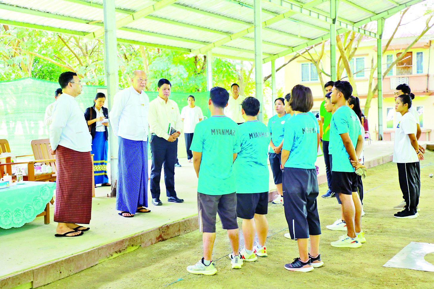 ထို့နောက် ဝိတ်တန်းများအလိုက် အတန်းပြည့် ဝင်ရောက်ယှဉ်ပြိုင်နိုင်ရန်အတွက် အလေးမလေ့ကျင့်ရေးအားကစားရုံ၌ အလေးမအားကစားသမားများ၏ အမြန်မနှင့် နှစ်ဆင့်မနည်းစနစ်ပိုင်းဆိုင်ရာ လေ့ကျင့်နေမှု၊ ပိုက်ကျော်ခြင်းလေ့ကျင့်ရေးရုံ၌ ပိုက်ကျော်ခြင်းအားကစားသမားများ၏ နှစ်ယောက်တွဲ၊ သုံးယောက်တွဲ လေ့ကျင့်နေမှုနှင့် ကွင်းသွင်းခြင်းခတ်အားကစားသမားများ၏ လေ့ကျင့်နေမှုတို့ကို လှည့်လည်ကြည့်ရှုအားပေးပြီး မိမိတို့ရရှိထားသည့် စံချိန်၊ စံညွှန်းများ ပိုမိုကောင်းမွန်အောင် နည်းပြဆရာများ၏ သင်ကြားလေ့ကျင့်ပေးမှုအတိုင်း စနစ်တကျလေ့ကျင့်သွားရန်၊ အုပ်ချုပ်သူ၊ နည်းပြများအနေဖြင့် လေ့ကျင့်မှုများ ပြုလုပ်ရာတွင် တွေ့ရှိရသည့် အားနည်းချက်၊ အားသာချက်များကို ပြန်လည်သုံးသပ်၍ ပြုပြင်သင်ကြား လေ့ကျင့်ပေးသွားရန် မှာကြားပြီး အုပ်ချုပ်သူ၊ နည်းပြများနှင့် အားကစားသမားများ၏ တင်ပြချက်များကို ဖြည့်ဆည်းဆောင်ရွက်ပေးသည်။