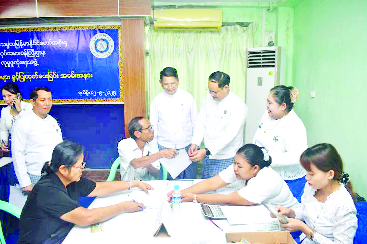 အလုပ်သမားဝန်ကြီးဌာန လူမှုဖူလုံရေးအဖွဲ့ပိုင် အလုပ်သမားဆေးရုံကြီး(ရန်ကုန်)တွင် အကျုံးဝင် အာမခံအလုပ်သမားများ၏ ဆေးဖိုးကုန်ကျစရိတ်များ ခွင့်ပြုထုတ်ပေးခြင်းကို ယမန်နေ့နံနက် ပိုင်းက အလုပ်သမားဆေးရုံကြီး(ရန်ကုန်) အစည်းအဝေးခန်းမ၌ ဆောင်ရွက်ရာ ရန်ကုန်တိုင်းဒေသကြီး တိုင်းရင်းသားရေးရာဝန်ကြီး ဦးစောဂျက်ကော့ထူး တက်ရောက် အမှာစကားပြောကြားသည်။