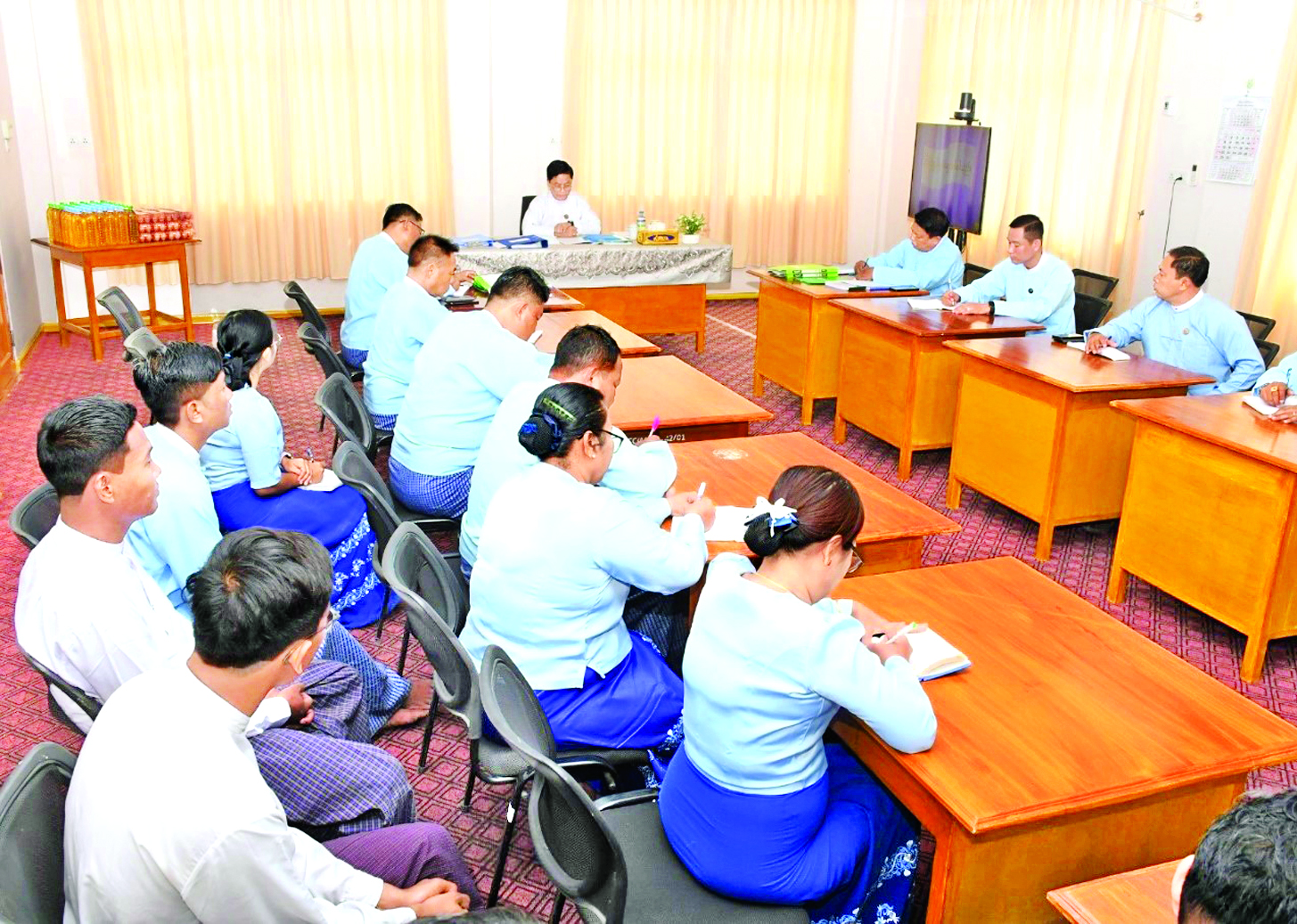 တွေ့ဆုံပွဲတွင် ကော်မရှင်ရုံးခွဲတာဝန်ခံ ညွှန်ကြားရေးမှူးက လုပ်ငန်းများဆောင်ရွက်နေမှုကို ရှင်းလင်းတင်ပြရာ ကော်မရှင်ဥက္ကဋ္ဌက ကော်မရှင်ရုံးခွဲ (မန္တလေး) အနေဖြင့်လည်း ၂၀၂၅-၂၀၂၆ ပညာသင်နှစ်တွင် တိုင်းဒေသကြီးအတွင်းရှိ တက္ကသိုလ်/ ကောလိပ်များနှင့် စက်မှုလက်မှုသိပ္ပံ/အထက်တန်းကျောင်း ၃၅ ခုတို့တွင် ဖြောင့်မတ်တည်ကြည်မှု မြှင့်တင်ရေး ပညာပေးအစီအစဉ်နှင့် လူငယ်စကားဝိုင်းများကို လျာထားကျင်းပလျက်ရှိရာ ထိရောက်အောင်မြင်မှုရှိအောင် ကြိုးပမ်းဆောင်ရွက်ကြရမည်ဖြစ်ကြောင်း၊ ဝန်ထမ်းများကို အထူး မှာကြားလိုသည်မှာ မကြာခင်ကာလ၌ ရွေးကောက်ပွဲကျင်းပတော့မည်ဖြစ်၍ ဝန်ထမ်းများအနေဖြင့် မပျက်မကွက် ဆန္ဒမဲပေးကြရန်၊ ဆန္ဒမဲပေးခြင်း လုပ်ငန်းစဉ်များကို ဝန်ထမ်းများ နားလည်သိရှိထားရန် လိုအပ်ကြောင်းနှင့် ရွေးကောက်ပွဲအောင်မြင်စေရေးအတွက် တတ်နိုင်သည့်ဘက်မှ အားလုံးပူးပေါင်းပါဝင်၍ ကူညီဆောင်ရွက်ကြရန် မှာကြားကာ ကော်မရှင်ဥက္ကဋ္ဌက ရုံးခွဲရှိ ဝန်ထမ်းများအတွက် ကြက်ဥ၊ စားသုံးဆီနှင့် စားသောက်ဖွယ်ရာများ ထောက်ပံ့ပေးအပ်ရာ ရုံးခွဲတာဝန်ခံက လက်ခံရယူသည်။