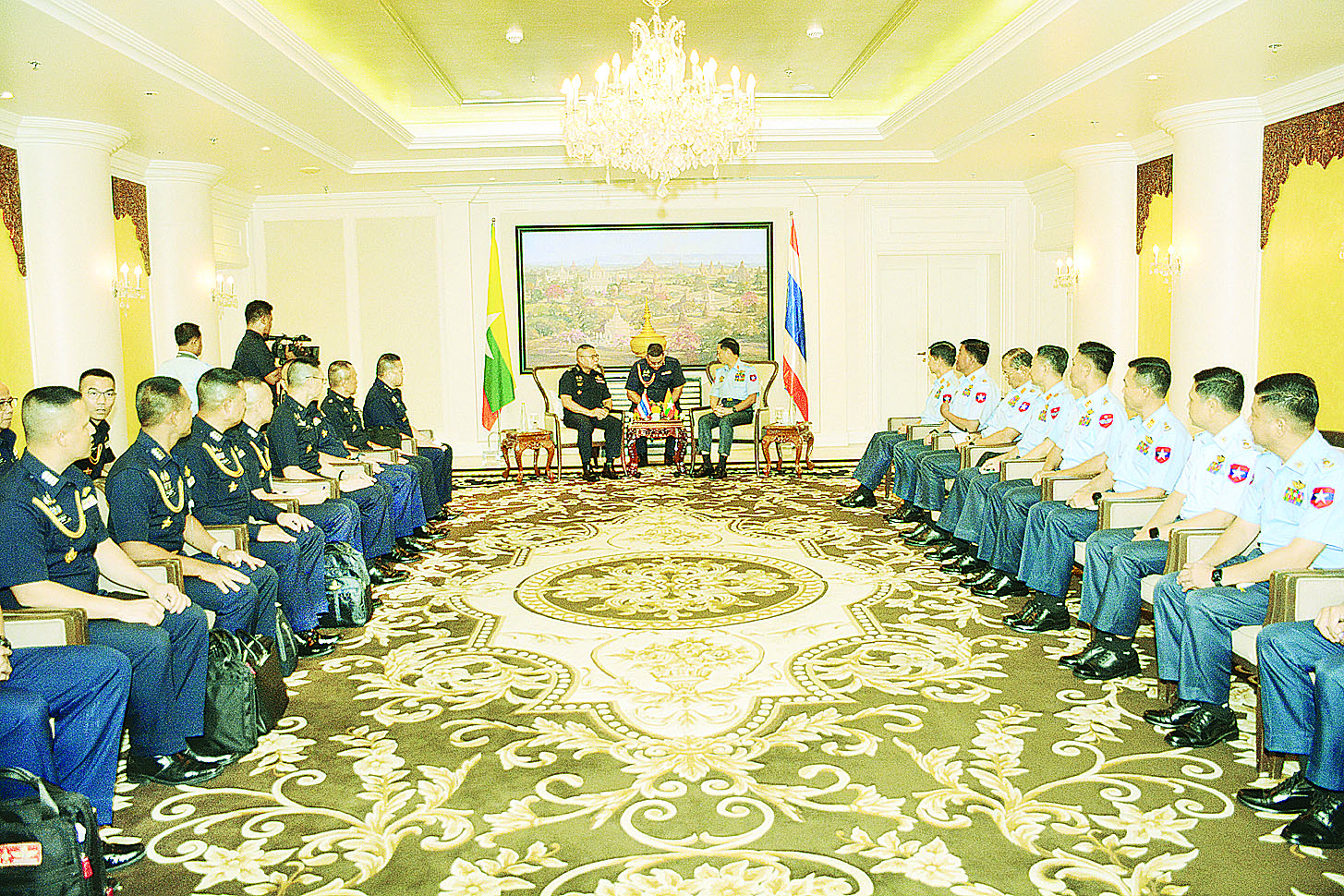 ကာကွယ်ရေးဦးစီးချုပ်(လေ) ဗိုလ်ချုပ်ကြီး ထွန်းအောင်၏ ဖိတ်ကြားချက်အရ မြန်မာ-ထိုင်း နှစ်နိုင်ငံလေတပ်များအကြား ချစ်ကြည်ရင်းနှီးမှုပိုမိုရရှိစေရန်အတွက် Bilateral Engagement Activities ဆိုင်ရာလှုပ်ရှားမှုများ ဆောင်ရွက်ရန် ထိုင်းဘုရင့်လေတပ်ဦးစီးချုပ် Air Chief Marshal Punpakdee Pattanakul နှင့်ဇနီး ဦးဆောင်သော ကိုယ်စားလှယ်အဖွဲ့သည် ယနေ့တွင် ထိုင်းဘုရင့်လေတပ်မှ ATR-72 လေယာဉ်ဖြင့် နေပြည်တော်သို့ ရောက်ရှိလာကြရာ တပ်မတော်(လေ)မှ အရာရှိကြီးများ၊ မြန်မာနိုင်ငံဆိုင်ရာ ထိုင်းဘုရင့်လေတပ် စစ်သံမှူးနှင့် တာဝန်ရှိသူများက ကြိုဆိုကြသည်။