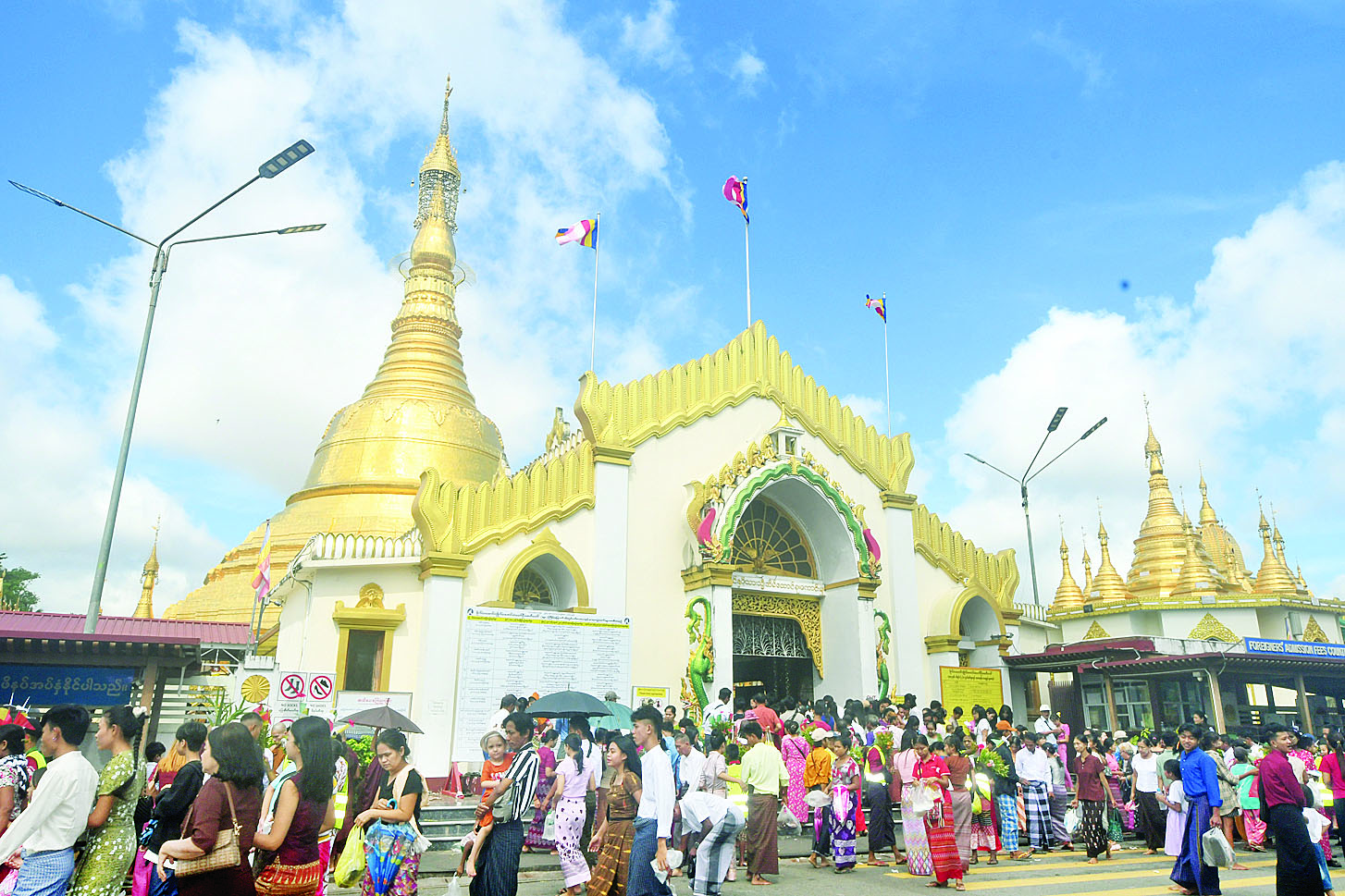 အလားတူ ဗိုလ်တထောင်ကျိုက်ဒေးအပ် ဆံတော်ဦးစေတီတော်၊ သီရိမင်္ဂလာကမ္ဘာအေးစေတီတော်၊ ရှေးဟောင်းသမိုင်းဝင် အပရာဇိတဆံတော်ရှင်ကျိုက်ဝိုင်းစေတီတော်၊ မဟာဝိဇယစေတီတော်၊ ဆူးလေစေတီတော်၊ ဝရဒါဌာ ဓာတုစေတိယ စွယ်တော်မြတ်စေတီတော် (ရန်ကုန်)၊ မင်းဓမ္မကုန်းတော်ရှိလောကချမ်းသာ အဘယလာဘမုနိ ဗုဒ္ဓရုပ်ပွားတော်မြတ်ကြီး၊ ရှေးဟောင်းသမိုင်းဝင် အပရာဇိတဆံတော်ရှင်ကျိုက် ဝိုင်းစေတီတော်၊ ငါးထပ်ကြီးဘုရား၊ ခြောက်ထပ်ကြီးဘုရား၊ ရွှေဘုန်းပွင့်စေတီတော်၊ သမိုင်းဝင်မဟာ ဓမ္မရံသီအိမ်တော်ရာစေတီတော်နှင့် ဆုတောင်းပြည့်မယ်လမုစေတီတို့တွင်လည်း ဂေါပကအဖွဲ့များကကြီးမှူး၍ ယနေ့နံနက်ပိုင်း အရုဏ်တက်ချိန်တွင် စေတီတော်နှင့် ဘုရားရုပ်ပွားတော်များအား ဆွမ်း၊ ပန်း၊ ရေချမ်း၊ ဆီမီး၊ သစ်သီးတို့ ကပ်လှူပူဇော်ကြပြီး ဂေါပကအဖွဲ့ဝင်များ၊ ဘာသာရေးဝတ်အသင်းအဖွဲ့များက အဘိဓမ္မာတရားတော်များ စုပေါင်းရွတ်ဆိုခြင်း၊ ဆုတောင်းအမျှဝေ သာဓုခေါ်ဆိုခြင်းတို့ကိုဆောင်ရွက်ကြပြီး ညပိုင်းတွင် ဂေါပကအဖွဲ့ဝင်များနှင့် ဘုရားဖူးပြည်သူများက ဆီမီးများထွန်းညှိပူဇော်ကြသည်။
