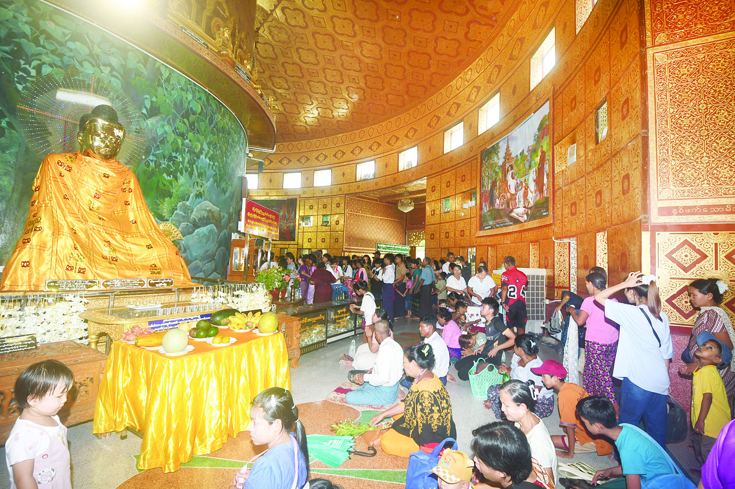 ယနေ့ သီတင်းကျွတ်လပြည့် (အဘိဓမ္မာအခါတော်နေ့) ၌ ရွှေတိဂုံစေတီတော်မြတ်ကြီးရင်ပြင်နှင့် စောင်းတန်းလေးသွယ်၌ ဘုရားဖူးလာပြည်သူများဖြင့် ကြိတ်ကြိတ်တိုး အထူးစည်ကားလျက်ရှိပြီး အလှူရှင်များက စတုဒိသာအဖြစ် ရေသန့်၊ အချိုရည်၊ ပေါင်မုန့်များကျွေးမွေးကြသည်။
