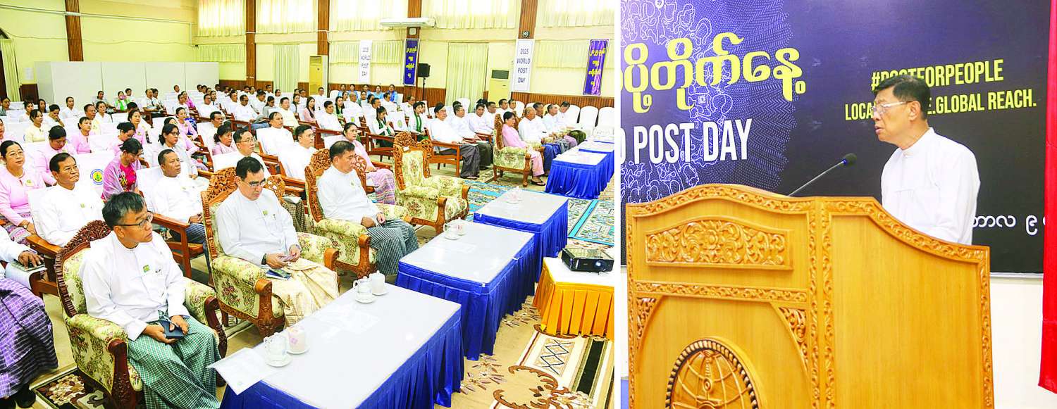 ယခုနှစ် ကမ္ဘာ့စာပို့တိုက်နေ့၏ ဆောင်ပုဒ်သည် မြန်မာ့စာတိုက် လုပ်ငန်း၏ ရည်မှန်းချက်ဖြစ်သည့် “လူတိုင်းအတွက် မြန်မာ့စာတိုက် (Myanmar Post for Everyone)” နှင့် ကိုက်ညီလျက်ရှိနေကြောင်း၊ ယူပီယူ၏ State of the Postal Sector 2024 အစီရင်ခံစာတွင် စာပို့တိုက်လုပ်ငန်းများအနေဖြင့် သမားရိုးကျစာပို့တိုက်ဝန်ဆောင်မှုများအပေါ်တွင်သာ မှီခိုအားထား နေခြင်းမပြုဘဲ ဒစ်ဂျစ်တယ်နည်းပညာများကို အသုံးပြုဆောင်ရွက်၍ ခေတ်နှင့်လျော်ညီအောင် ပြုပြင်ပြောင်းလဲပြီး နိုင်ငံတကာ ဈေးကွက်သို့ အောင်မြင်စွာ ချိတ်ဆက်နိုင်မှသာ အနာဂတ်တွင် ကြံ့ကြံ့ခံနိုင်ပြီး ပြန်လည်ရှင်သန် ဦးမော့လာနိုင်မည်ဖြစ်ကြောင်းနှင့် မကြာသေးမီက ကျင်းပခဲ့သည့် (၂၈)ကြိမ်မြောက် ကမ္ဘာ့စာပို့ တိုက်သမဂ္ဂ(ယူပီယူ) ကွန်ဂရက်မှ ချမှတ်ဆောင်ရွက်ခဲ့သည့် Development Strategy များ၊ သဘောတူညီချက်များနှင့် နိုင်ငံတကာမှ စာပို့တိုက်ကဏ္ဍ ဖွံ့ဖြိုးတိုးတက်မှု၊ နည်းပညာတိုးတက်မှုများကို စာပို့တိုက် ကဏ္ဍကြီးကြပ် ဆောင်ရွက်သူ၊ ဆက်သွယ်ရေးညွှန်ကြားမှုဦးစီးဌာနနှင့် စာပို့တိုက်ဝန်ဆောင်မှုလုပ်ငန်း လုပ်ကိုင်သူ၊ မြန်မာ့စာတိုက်လုပ်ငန်းတို့မှ မျက်ခြည်မပြတ် လေ့လာစောင့်ကြည့်၍ မိမိတို့နိုင်ငံ၏ စာပို့တိုက်ကဏ္ဍ ပြန်လည်ဦးမော့လာနိုင်ရေး ဆက်လက်ကြိုးပမ်း ဆောင်ရွက်သွားကြရန် တိုက်တွန်းမှာကြားလိုကြောင်း ပြောကြားသည်။
