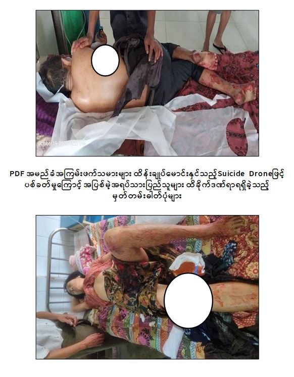 PDF အမည်ခံ အကြမ်းဖက်သမားများက ကလေးမြို့တွင်းသို့ Suicide Drone ဖြင့် အကြောင်းမဲ့ ပစ်ခတ်တိုက်ခိုက်၊ အပြစ်မဲ့အရပ်သားပြည်သူ ၂ ဦး ထိခိုက်ဒဏ်ရာများရရှိ