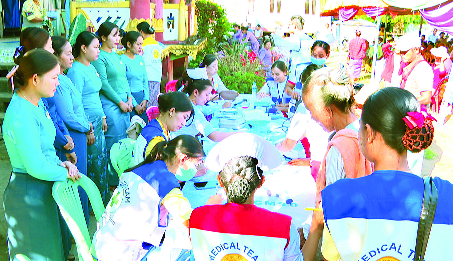 ဦးစွာ ပြည်ထောင်စုဝန်ကြီး ဦးဆောင်သည့် လုပ်ငန်းကော်မတီအဖွဲ့သည် တပ်ကုန်းမြို့နယ် အုန်းပင်ကျေးရွာရှိ မင်္ဂလာရန်အောင်ကျောင်းတိုက်တွင် အုန်းပင်ကျေးရွာနှင့် အနီးပတ်ဝန်း ကျင်ကျေးရွာများဖြစ်သည့် တောင်ပို့သာ၊ သကြားဟင်းအိုး၊ သစ်ဆိမ့်ပင်၊ ဆူးတက်၊ ကျောက်စရစ်ကုန်း၊ ကျွဲလည်ပင်း၊ ချင်းစုနှင့် ကြာပင်အင်းကျေးရွာတို့မှ ဒေသခံပြည်သူများအား အထူးကုဆရာဝန်ကြီးများပါဝင်သည့် ကျန်းမာရေးအဖွဲ့မှ ကျန်းမာရေးစောင့်ရှောက်မှုဆောင်ရွက်ပေးနေမှုနှင့် လူသုံးကုန်နှင့် ဆေးဝါးပစ္စည်းများ ထောက်ပံ့ပေးနေမှုတို့ကို ကြည့်ရှုအားပေးပြီး ဒေသခံပြည်သူများအတွက် ဗုဒ္ဓဆင်းတုရုပ်ပွားတော်များနှင့် ပြန်ကြားရေး ဝန်ကြီးဌာနမှ ထုတ်ဝေသည့် ၂၀၂၆ ခုနှစ် ပြက္ခဒိန်များအား ပေးအပ်လှူဒါန်းသည်။