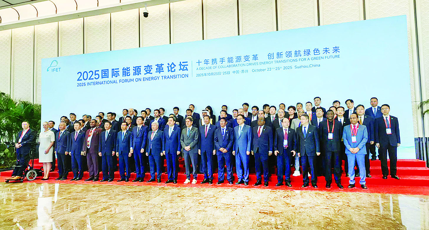 တရုတ်ပြည်သူ့သမ္မတနိုင်ငံ စူးကျိုးမြို့၌ ရောက်ရှိနေသော လျှပ်စစ်စွမ်းအားဝန်ကြီးဌာန ပြည်ထောင်စုဝန်ကြီး ဦးဉာဏ်ထွန်း ဦးဆောင်သော မြန်မာကိုယ်စား လှယ်အဖွဲ့သည် ယမန်နေ့က တရုတ်အမျိုးသားစွမ်းအင်စီမံခန့်ခွဲမှုဌာနနှင့် International Renewable Energy Agency (IERNA)တို့က ကြီးမှူးကျင်းပသော စွမ်းအင်အသွင်ကူးပြောင်းမှု အပြည်ပြည်ဆိုင်ရာ ဖိုရမ် -၂၀၂၅ သို့ တက်ရောက်သည်။