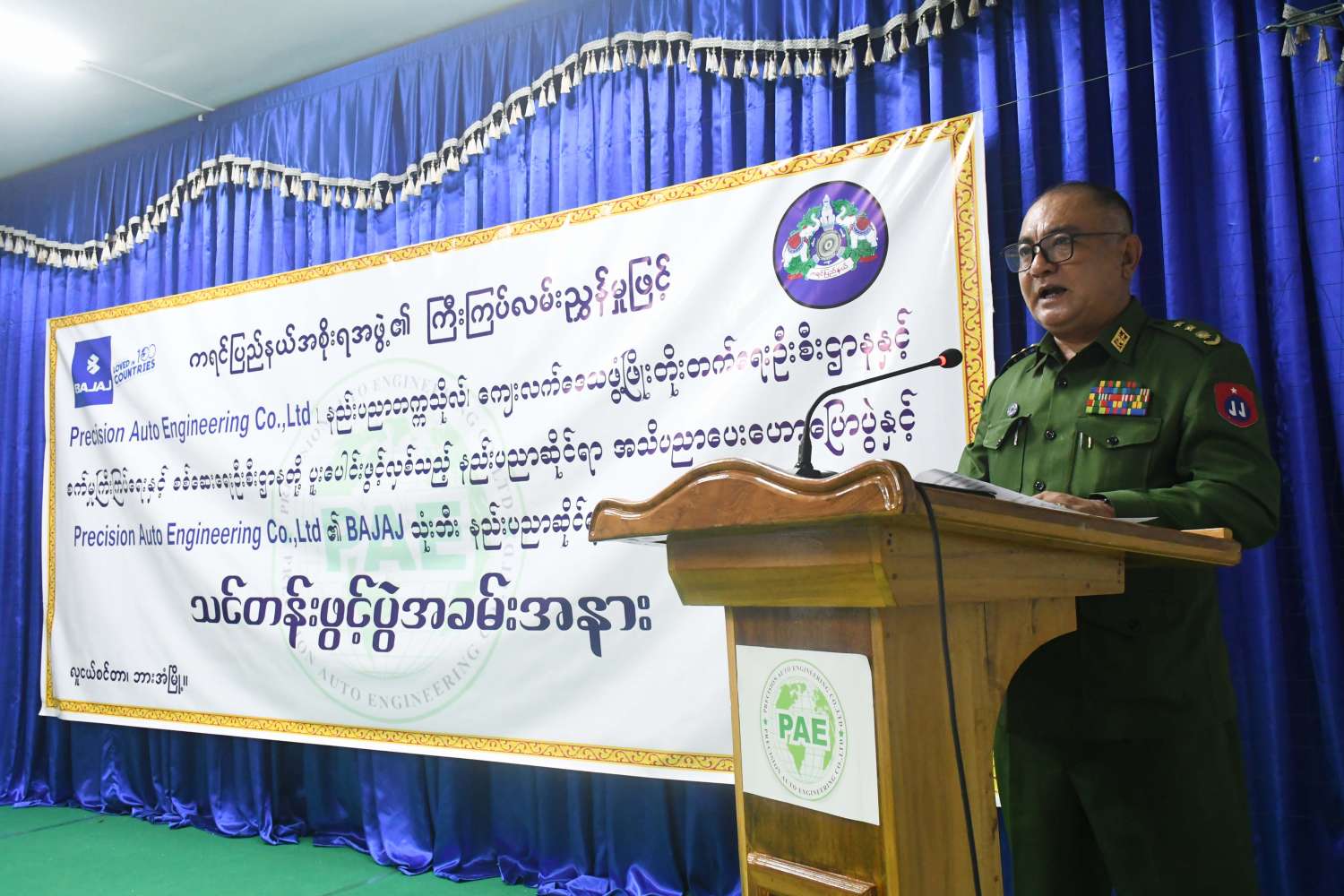 ထို့နောက် Precision Auto Engineering Co.,Ltd မန်းနေဂျင်းဒါရိုက်တာ Mr Vrlkam Krishna က သုံးဘီးနည်းပညာဆိုင်ရာ အလုပ်အကိုင်အခွင့်အလမ်းသင်တန်းနှင့်ပတ်သက်၍ရှင်းလင်းပြောကြားပြီး နည်းပညာတက္ကသိုလ်ဒုတိယပါမောက္ခချုပ် ဒေါက်တာအောင်ဇော်လတ်က အသိပညာပေးဟောပြောပွဲ ဆောင်ရွက်ခြင်းအကြောင်းအားရှင်းလင်းတင်ပြပြီး ကျေးဇူးတင်စကားပြောကြားသည်။ ထို့နောက် ပြည်နယ်တရားလွှတ်တော်တရားသူကြီးချုပ်ဦးညွန့်လင်းက အသိပညာပေးဆွေးနွေးဟောပြောမည့်သူများနှင့် Precision Auto Engineering Co.,Ltd တို့အား ဂုဏ်ပြု လက်မှတ်များပေးအပ်ချီးမြှင့်သည်။