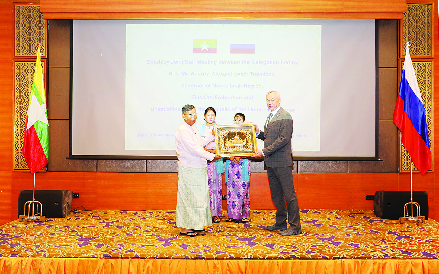 ပြည်ထောင်စုဝန်ကြီးများနှင့် ရုရှားဖက်ဒရေးရှင်းနိုင်ငံ နိုဗိုစီဗစ်ဒေသအုပ်ချုပ်ရေးမှူး H.E.Mr. Andrey Travnikov ဦးဆောင်သောကိုယ်စားလှယ်အဖွဲ့ တွေ့ဆုံဆွေးနွေး