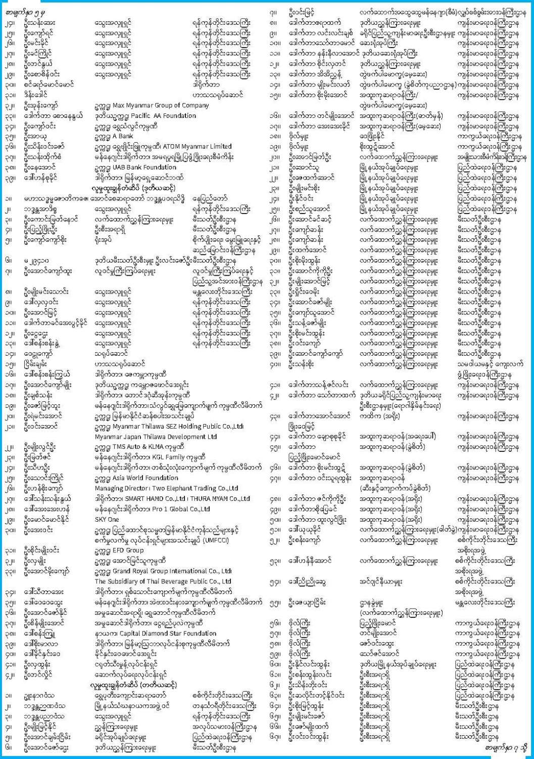 ဦးစီးဌာနနှင့် လုပ်ငန်းများ၏ ကြေညာချက်များ