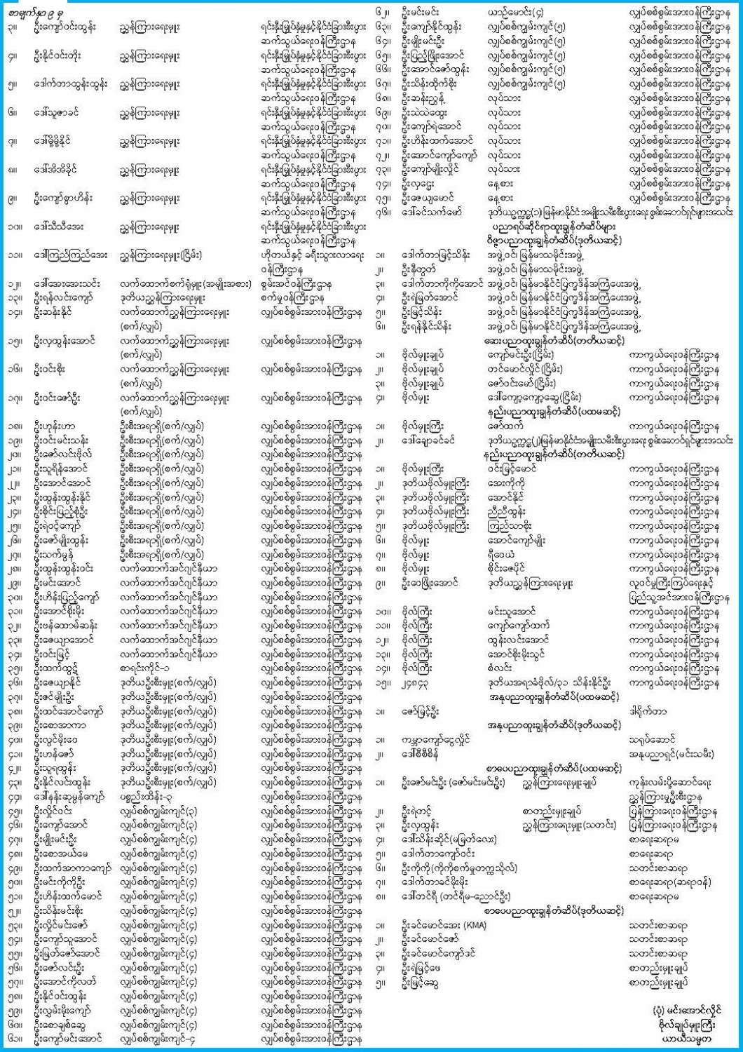 ဝန်ကြီးဌာန ကြေညာချက်များ