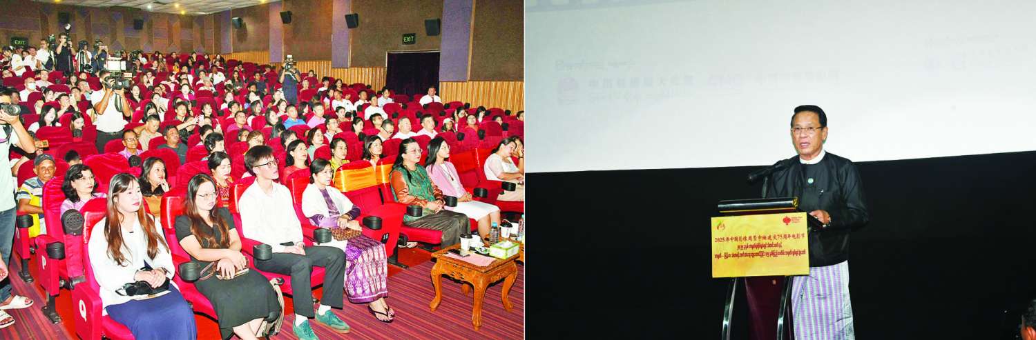 တရုတ်-မြန်မာ (၇၅) နှစ်မြောက် သံတမန်ဆက်ဆံရေး ထူထောင်ခြင်းအထိမ်းအမှတ် ယဉ်ကျေးမှုဖလှယ်ရေးမြှင့်တင်မှု အစီအစဉ်တစ်ရပ်အဖြစ် ၂၀၂၅ ခုနှစ် တရုတ်ပုံရိပ်ရုပ်ရှင် ရက်သတ္တပတ်နှင့် တရုတ်-မြန်မာ ရုပ်ရှင်ပွဲတော်ဖွင့်ပွဲအခမ်းအနားကို ယနေ့မွန်းလွဲပိုင်းတွင် ရန်ကုန်မြို့ ကျောက်တံတားမြို့နယ်ရှိ နေပြည်တော်ရုပ်ရှင်ရုံ၌ ကျင်းပသည်။