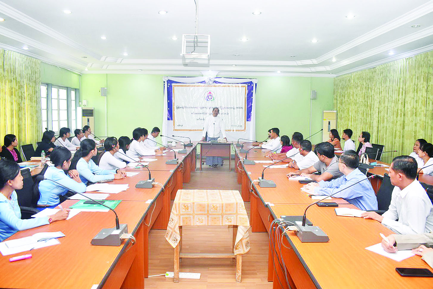 ဦးစွာ ဒုတိယဝန်ကြီးက NSSA ၏ ကျွမ်းကျင်မှုစစ်ဆေးအကဲဖြတ်ခြင်းလုပ်ငန်းစဉ်များတွင် ပါဝင်ဆောင်ရွက်မည့် စစ်ဆေးအကဲဖြတ်သူ(Assessor)များသည် Key Player များအဖြစ် ပါဝင်ဆောင်ရွက်ရသည့်အတွက် Assessor များ၏အခန်းကဏ္ဍ အလွန်အရေးပါကြောင်း၊ စစ်ဆေးအကဲဖြတ်ရေး လုပ်ငန်းစဉ်များ ဆောင်ရွက်ရာတွင် လက်တွေ့သုံးပစ္စည်းများကို ကြိုတင်စစ်ဆေးခြင်း၊ ဖြေဆိုသူလက်စွဲစာအုပ်ပါ စည်းမျဉ်းစည်းကမ်းများအား ရှင်းလင်းမျှဝေခြင်း၊ ဖြေဆိုရာတွင် တွေ့ကြုံနိုင်သော အခက်အခဲများမျှဝေခြင်း၊ စာတွေ့/ လက်တွေ့နမူနာပုံစံများ မျှဝေခြင်း၊ ဖြေဆိုမည့်သူများ ဝင်ရောက်ဖြေဆိုရန် အရည်အချင်းပြည့်မီမှုရှိ/မရှိ အကဲဖြတ်ခြင်း၊ ကြိုတင် စိစစ်ခြင်းတို့အပြင် ဖြေဆိုသူများကို အနီးကပ်ကြီးကြပ် ဆောင်ရွက်ပေးရသည့်လုပ်ငန်းစဉ်များ ဆောင်ရွက်ပေးရကြောင်း၊ သင်တန်းတက်ရောက်လာသူ ဘာသာရပ်ဆိုင်ရာ ကျွမ်းကျင်သူများအနေဖြင့် သင်တန်းတွင် ပို့ချပေးသည့် အသိပညာ၊ ဗဟုသုတများကို လက်တွေ့လိုက်နာဆောင်ရွက် နိုင်ရေးသေချာမှတ်သားသွား စေလိုကြောင်း။