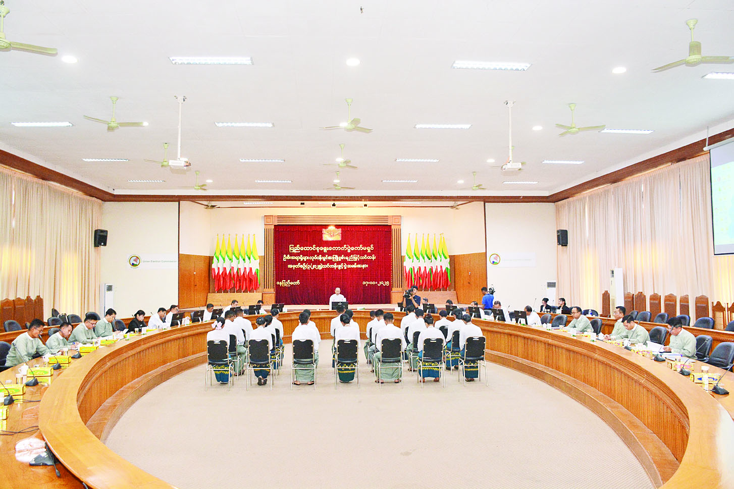 မဲဆန္ဒရှင်စာရင်းများ ပြည့်စုံစေရန်အတွက် ဒုတိယအကြိမ်နှင့် တတိယအကြိမ်တို့ကို ထပ်မံကပ်ထားပေးမည်ဖြစ်ပြီး မဲဆန္ဒရှင်ပြည်သူများအနေဖြင့် မဲစာရင်းတွင်ထည့်သွင်းရန် တောင်းဆိုခြင်း၊ ပြင်ဆင်ခြင်း၊ ကန့်ကွက်ခြင်းတို့ကို ဥပဒေနှင့်အညီ ဆောင်ရွက်နိုင်ပါကြောင်း၊ မဲစာရင်းများ ကပ်ထားရာတွင် စနစ်တကျဖြစ်စေရန် သက်ဆိုင်ရာကော်မရှင်အဖွဲ့ခွဲများက ကြီးကြပ်ဆောင်ရွက်ကြရန် မှာကြားလိုကြောင်း၊ မဲဆွယ်စည်းရုံးရေး နှင့်စပ်လျဉ်း၍ စနစ်တကျဖြစ်စေရန် ရွေးကောက်ပွဲဥပဒေ၊ နည်းဥပဒေများတွင် ထည့်သွင်းပြဋ္ဌာန်းထားပြီး မဲဆွယ် စည်းရုံးရေးကာလအတွင်း နိုင်ငံရေးပါတီများ၊ နိုင်ငံရေးပါတီများမှ ကိုယ်စားလှယ်လောင်းများ၊ တစ်သီးပုဂ္ဂလကိုယ်စား လှယ်လောင်းများအနေဖြင့် မဲဆွယ်စည်းရုံးရေးဆောင်ရွက်ကြရာတွင် ဥပဒေ၊ နည်းဥပဒေများနှင့်အညီ ဖြစ်စေရေး သက်ဆိုင်ရာကော်မရှင်အဖွဲ့ခွဲများက စနစ်တကျ ကြီးကြပ်ဆောင်ရွက်ကြရန် လိုပါကြောင်း။