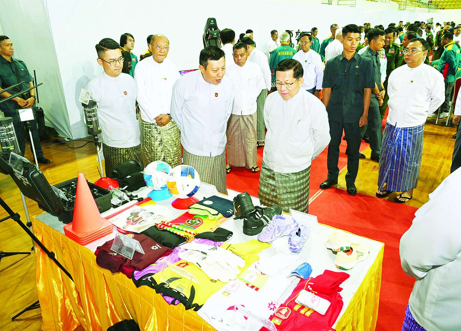 ယင်းနောက် နိုင်ငံတော်ယာယီသမ္မတ နိုင်ငံတော်လုံခြုံရေးနှင့် အေးချမ်းသာယာရေးကော်မရှင်ဥက္ကဋ္ဌက (၃၃)ကြိမ်မြောက် အရှေ့တောင်အာရှအားကစားပြိုင်ပွဲသို့ ဝင်ရောက်ယှဉ်ပြိုင်မည့်အားကစားအဖွဲ့များအား လိုက်လံနှုတ်ဆက်အားပေးစကားပြောကြားပြီး အားကစားအဖွဲ့များအသုံးပြုမည့် အားကစားနည်းများအလိုက် အသုံးအဆောင်ပစ္စည်းများအား ပြခန်းတစ်ခုချင်းစီအလိုက် လိုက်လံကြည့်ရှုစစ်ဆေးကာ တာဝန်ရှိသူများ၏ တင်ပြချက်များအပေါ် လိုအပ်သည်များလမ်းညွှန်မှာကြား ဖြည့်ဆည်းဆောင်ရွက်ပေးခဲ့ကြောင်း သတင်းရရှိသည်။