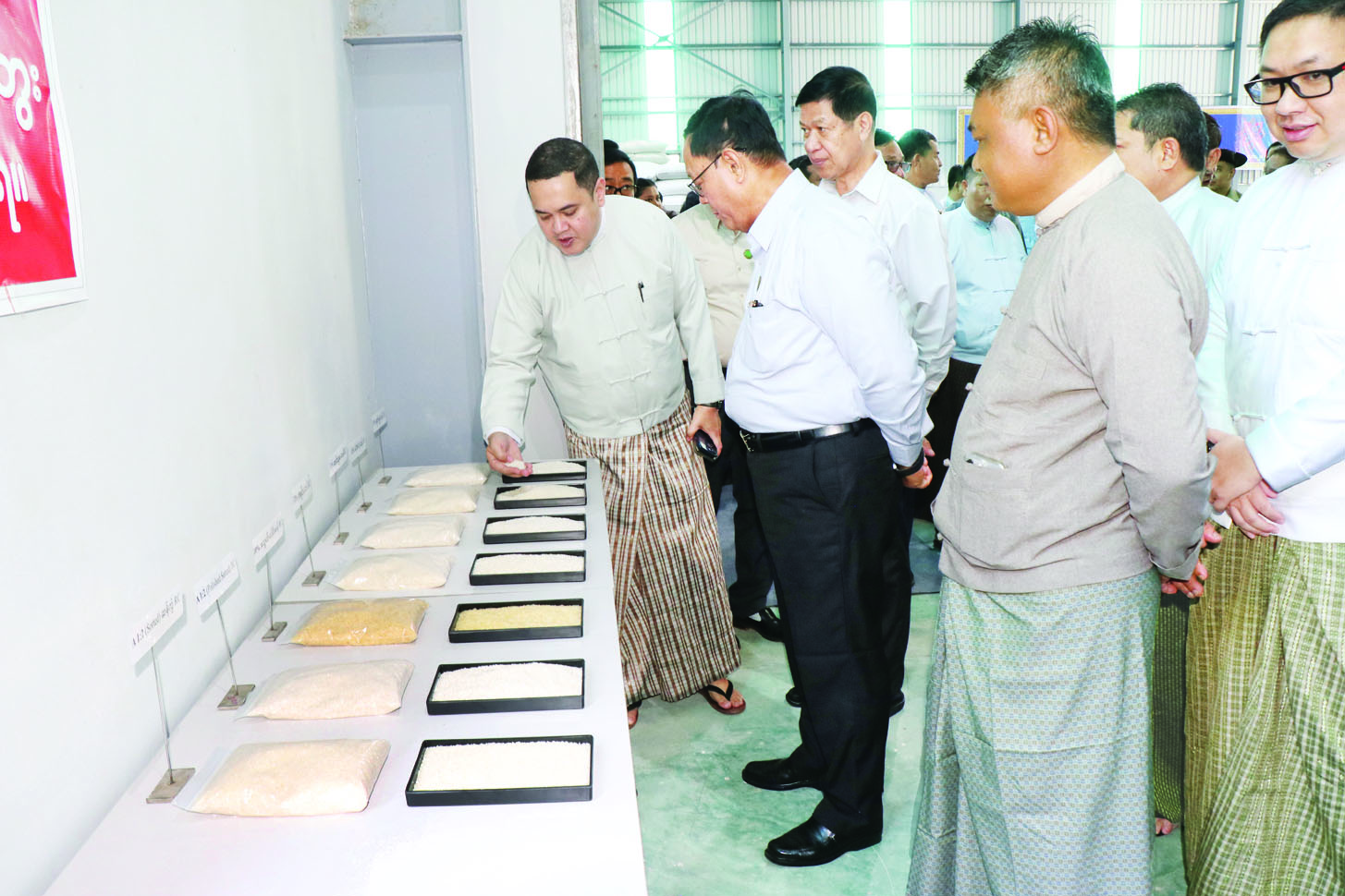 ထို့နောက် မြန်မာနိုင်ငံဆန်စပါးအသင်းချုပ်ဥက္ကဋ္ဌက တန် ၁၅၀ ဆန်စက်တည်ဆောက်ခဲ့မှုနှင့် မြန်မာတစ်နိုင်ငံလုံးဆန်စက်တည်ဆောက်နိုင်မှုအခြေအနေများကို ရှင်းလင်းတင်ပြပြီး ပြည်ထောင်စုဝန်ကြီး၊ တိုင်းဒေသကြီးဝန်ကြီးချုပ်နှင့် တာဝန်ရှိသူများက စက်ရုံအတွင်း လှည့်လည်ကြည့်ရှုစစ်ဆေးသည်။