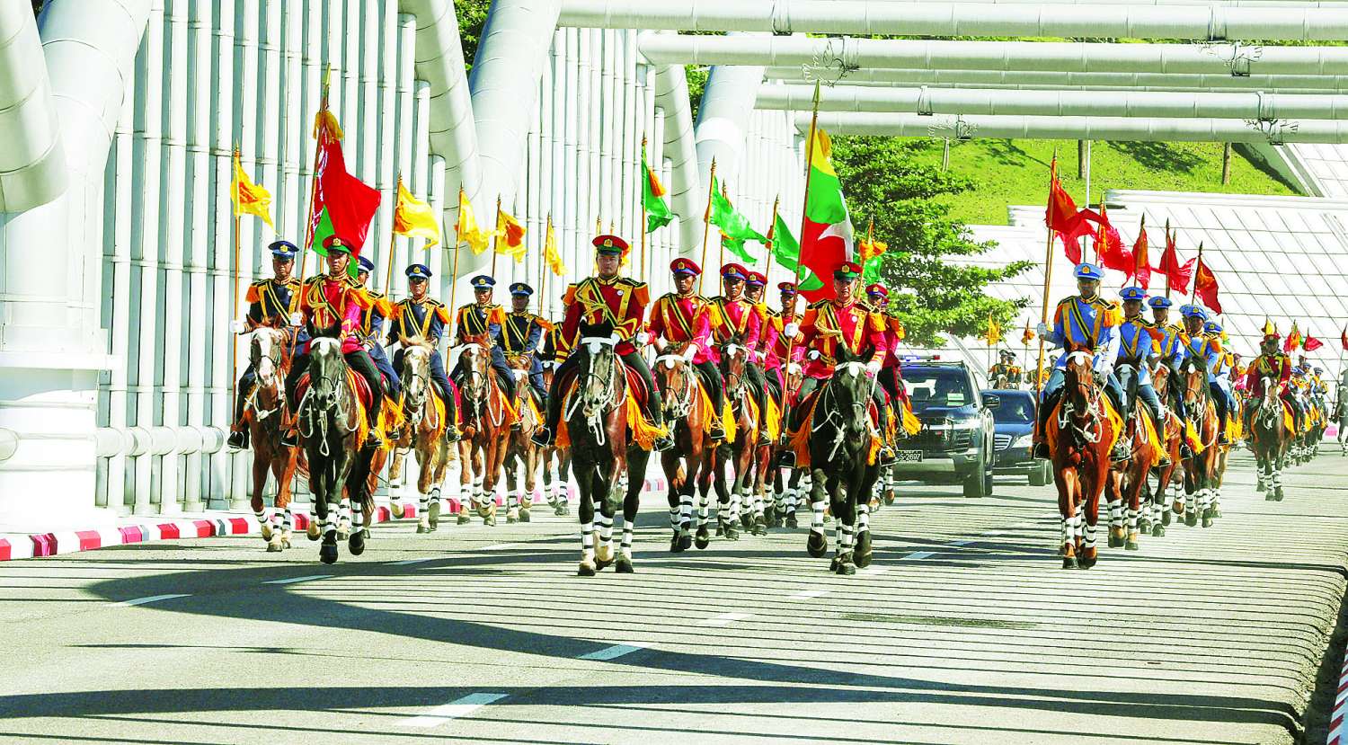 ဦးစွာ ဘယ်လာရုစ်သမ္မတနိုင်ငံသမ္မတ လိုက်ပါလာသည့် အထူးယာဉ်တန်းသည် နိုင်ငံတော်သမ္မတအိမ်တော်သို့ ဂုဏ်ပြုမြင်းစီးတပ်ဖွဲ့၏ ဦးဆောင်ကြိုဆိုမှုဖြင့် ရောက်ရှိလာရာ နိုင်ငံတော်ယာယီသမ္မတ နိုင်ငံတော်လုံခြုံရေးနှင့်အေးချမ်းသာယာရေးကော်မရှင်ဥက္ကဋ္ဌက ရင်းနှီးနွေးထွေးစွာ ကြိုဆိုနှုတ်ဆက်သည်။