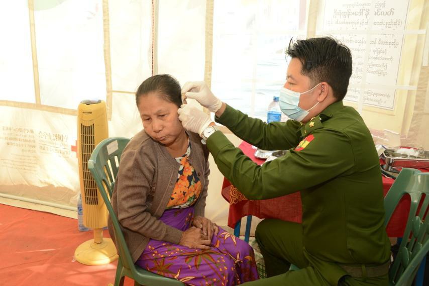 ထိုသို့ ဆောင်ရွက်ပေးရာတွင် ဆေးကုသမှုဆိုင်ရာရောဂါ ၂၆၈ ဦး၊ ခွဲစိတ်ရောဂါ ၂၄ ဦး၊ သားဖွား/မီးယပ်ရောဂါ ၃၁ ဦး၊ ကလေးရောဂါ ၂၆ ဦး၊ အရိုးရောဂါ ၆၃ ဦး၊ နား၊ နှာခေါင်း၊ လည်ချောင်းရောဂါ ၂၉ ဦး၊ မျက်စိရောဂါ ၄၇ ဦးနှင့် သွားနှင့်ခံတွင်းရောဂါ ၂၈ ဦးတို့ကို လိုအပ်သည့် ဆေးဝါးကုသမှုများ ဆောင်ရွက်ပေးသည်။ ၎င်းတို့အနက် အထွေထွေခွဲစိတ်လူနာ ၁ ဦး၊ ဓာတ်မှန်ရိုက်လူနာ ၁၃ ဦး၊ Ultrasound စက်ဖြင့် စမ်းသပ်စစ်ဆေး လူနာ ၂၉ ဦး၊ ECG စက်ဖြင့် နှလုံးစမ်းသပ်လူနာ ၈ ဦးနှင့် ဓာတ်ခွဲစမ်းသပ်လူနာ ၃၈ ဦး တို့ကို ရောဂါရှာဖွေစမ်းသပ်ကုသပေးခြင်းများ ဆောင်ရွက်ပေးသည်။
