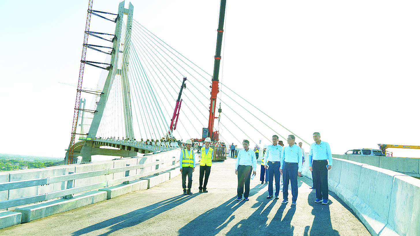 ယင်းနောက် လမ်းဦးစီးဌာနမှ ညွှန်ကြားရေးမှူးချုပ်က ချဉ်းကပ်တံတားများနှင့် ပင်မတံတားပေါ်တွင် ကတ္တရာကွန်ကရစ်(AC)ခင်းခြင်းလုပ်ငန်းများ ဆောင်ရွက်နေသည့်အခြေအနေ၊ လမ်းညွှန်အမှတ်အသားများ ဆောင်ရွက်မည့်အခြေအနေ၊ အဆောက်အဦဦးစီးဌာနမှ အင်ဂျင်နီယာချုပ်က ဒလဘက်ခြမ်းတွင် Toll Plaza နှင့် Administrative Office တည်ဆောက်နေမှုအခြေအနေ၊ ယာဉ်များ အဆင်ပြေစွာသွားလာနိုင်ရေးနှင့် ငွေကောက်ခံမှုစနစ်ဆောင်ရွက်မည့် အစီအစဉ်တို့ကို ရှင်းလင်းတင်ပြသည်။