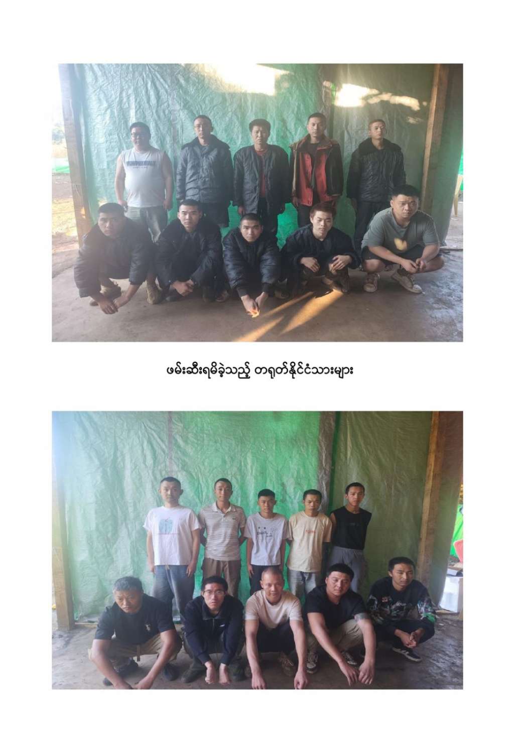 ဆက်လက်၍ လုံခြုံရေးတပ်ဖွဲ့ဝင်များသည် နယ်မြေလုံခြုံရေးလုပ်ငန်းများဆက်လက်ဆောင်ရွက်စဉ် တောင်ထိပ်ကျေးရွာအနီး ထပ်မံ၍ရှင်းလင်းရာ အဆိုပါနေရာ၏ မြောက်ဘက်တွင် အွန်လိုင်းလိမ်လည်လောင်းကစားမှုများ လုပ်ကိုင်နေသူများဖြစ်သည့် တရုတ်နိုင်ငံသား ၁၀ ဦးအားလည်းကောင်း၊ ယနေ့တွင် အဆိုပါနေရာ၏ မြောက်ဘက်၊ တောင်ထိပ်ကျေးရွာ၏ တောင်ဘက်တွင် တရုတ်နိုင်ငံသား ၁၀ ဦးအားလည်းကောင်း၊ တောင်ထိပ်ကျေးရွာ၏ မြောက်ဘက်ရှိ ပုံဝိုးကျေးရွာအနီးတွင်လည်း တရုတ်နိုင်ငံသား ၈ ဦးအားလည်းကောင်း အသီးသီး ဖမ်းဆီးရမိခဲ့သည်။
