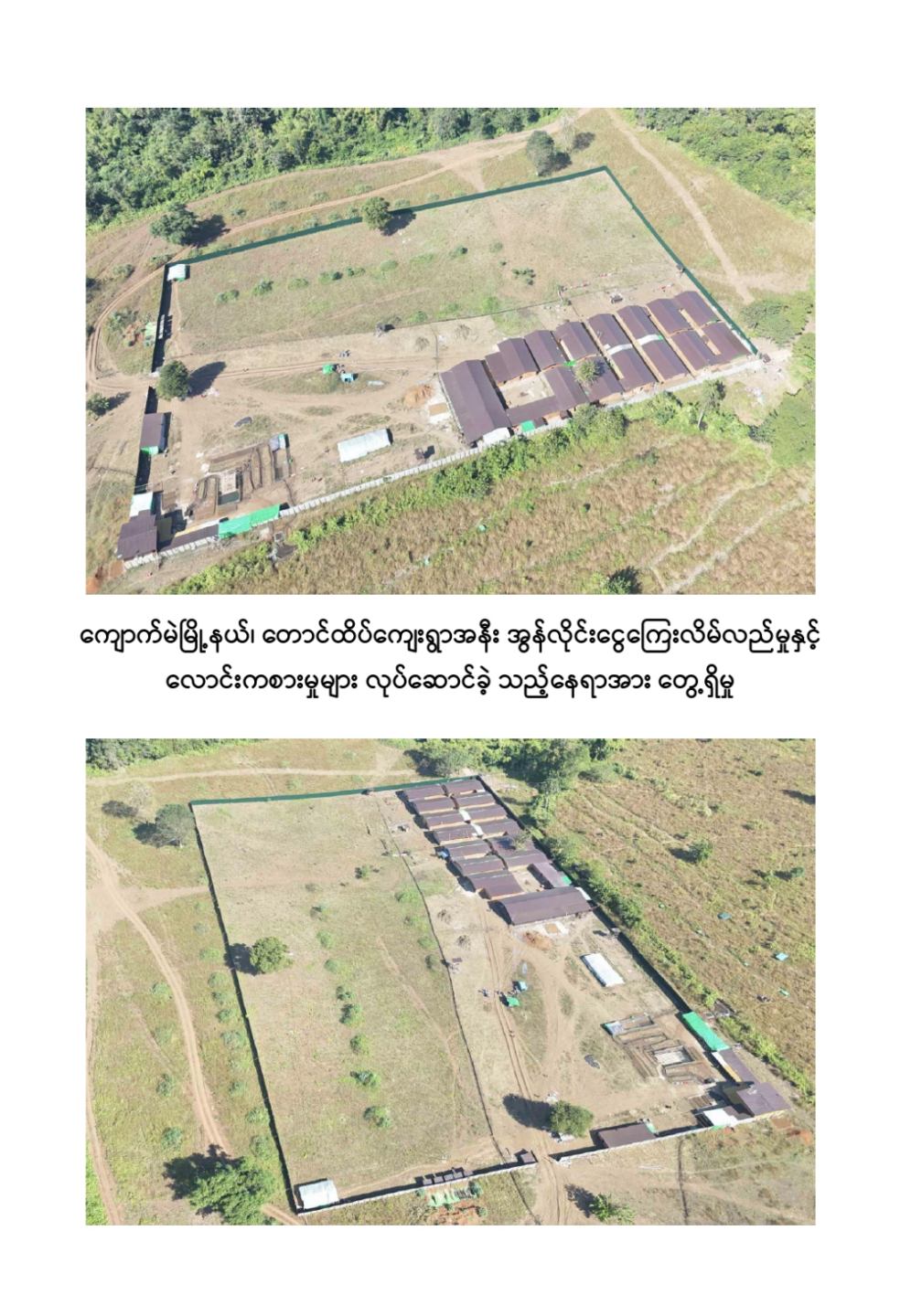 ကျောက်မဲမြို့နယ်အတွင်း နယ်မြေလုံခြုံရေးဆောင်ရွက်နေသည့် လုံခြုံရေးတပ်ဖွဲ့ဝင်များသည် နိုဝင်ဘာ ၃၀ ရက်တွင် ကျောက်မဲမြို့နယ်၊ တောင်ထိပ်ကျေးရွာ၏တောင်ဘက် ဒုဋ္ဌဝတီမြစ်အနီးသို့ရောက်ရှိစဉ် မသင်္ကာဖွယ်ရာအဆောက်အအုံများကိုတွေ့ရှိရသဖြင့် ဝင်ရောက်ရှာဖွေစစ်ဆေးခဲ့ရာ အွန်လိုင်းငွေကြေးလိမ်လည်မှုနှင့် လောင်းကစားမှုများ လုပ်ဆောင်နေသည့်နေရာဖြစ်ကြောင်းတွေ့ရှိရပြီး လုပ်ငန်းလုပ်ကိုင်နေကြသူများအား မတွေ့ရှိရဘဲ အလျား ၆၀ ပေ၊ အနံ ၃၀ ပေ ရှိ သွပ်မိုး ၃ ထပ်သားကာ အိပ်ဆောင် ၆ လုံး၊ အလျား ၆၀ ပေ၊ အနံ ၃၀ ပေ ရှိ သွပ်မိုး ၃ ထပ်သားကာ လုပ်ငန်းဆောင် ၅ လုံး၊ အလျား ၆၀ ပေ၊ အနံ ၃၀ ပေ ရှိ သွပ်မိုး ၃ ထပ်သားကာ အစားအစာသိုလှောင်ရုံ ၆ လုံး၊ အလျား ၆၀ ပေ၊ အနံ ၃၀ ပေ ရှိ ဆောက်လုပ်ဆဲလုပ်ငန်းဆောင် ၁ လုံး၊ အလျား ၆၀ ပေ၊ အနံ ၃၀ ပေ ရှိ ဆောက်လုပ်ဆဲအိပ်ဆောင် ၁ လုံး၊ အလျား ၈၀ ပေ၊ အနံ ၁၅ ပေ ရှိအထွေထွေသုံးအဆောင် ၁ လုံး၊ အလျား ၈၀ ပေ၊ အနံ ၁၀ ပေ ရှိ ၃ထပ်သားကာ တန်းလျားရှည်အိမ်သာ အိမ်သာ ၁ လုံး၊ အလျား ၃၀ ပေ၊ အနံ ၁၀ ပေ ရှိ အိပ်ခန်းတွဲ ၄ ခန်းတွဲအိပ်ဆောင် ၁ လုံး၊ အိပ်ခန်း ၄ ခန်းတွဲ(ရိက္ခာစတိုပါ) နှစ်ထပ်ဆောင် ၁ လုံး၊ မီးစက်အကြီး ၁ လုံး၊ ၁၅ ပေအမြင့် ကင်းစောင့် သစ်သား မျှော်စင် ၅ လုံး၊ အလျား ၂၀ ပေ၊ အနံ ၁၀ ပေ၊ အိပ်ဆောင်တန်းလျား ၁ လုံး၊ အလျား ၇၀၀ ပေ၊ အနံ ၄၀၀ ပေ၊ သွပ်ကာခြံဝန်း ၁ ခု၊ ALL IN ONE DESKTOP ကွန်ပျူတာ ၃၀ လုံး၊ STAR LINK ဗန်း ၁၀ ခု AIR COOLER ၁ လုံး၊ XIAOMI ဝိုင်ဖိုင်စက် ၂ လုံး၊ SOUND BOX ၁ လုံး၊ POWER STATION ၃ လုံး၊ ငွေရေတွက်စက် ၁ လုံး၊ ငွေကဒ်ဖြတ်စက် ၃ လုံး၊ ကွန်ပျူတာ ဆက်စပ်ပစ္စည်းများနှင့် အခြားလျှပ်စစ်သုံးပစ္စည်းများကို တွေ့ရှိသိမ်းဆည်းရမိခဲ့ကြောင်း သိရှိရသည်။