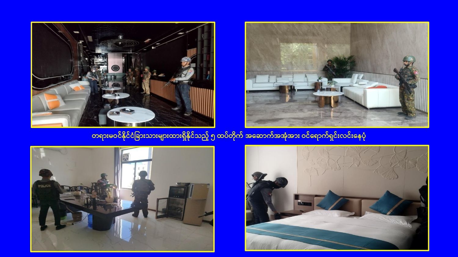 ထို့ပြင် ရွှေကုက္ကိုလ်နယ်မြေအတွင်း အွန်လိုင်းလိမ်လည်မှုများလုပ်ဆောင်ရာတွင် အသုံးပြုခဲ့သည့် အဆောက်အအုံများအား နိုဝင်ဘာ ၁၈ ရက်မှ စတင်စစ်ဆေးခဲ့ရာ ယနေ့အထိ တရားမဝင်အဆောက်အအုံ ၁၄၀ လုံးကို စစ်ဆေးတွေ့ရှိရပြီး အဆိုပါ အဆောက်အအုံများကို ပြန်လည်အသုံးပြုမှုမရှိစေရေးအတွက် သိမ်းဆည်းချိပ်ပိတ်ခြင်းများကို ဆက်လက်ဆောင်ရွက်လျက်ရှိရာ ယနေ့အတွင် တရားမဝင်အဆောက်အအုံ ၁၃ လုံးကို ထပ်မံချိပ်ပိတ်သိမ်းဆည်းနိုင်ခဲ့ပြီး တရားမဝင်အဆောက်အအုံ စုစုပေါင်း ၁၃၂ လုံး ချိပ်ပိတ်သိမ်း ဆည်းပြီးဖြစ်ကြောင်း သိရှိရသည်။