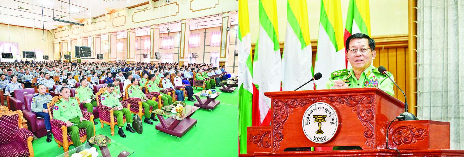 ပြည်ထောင်စုသမ္မတမြန်မာနိုင်ငံတော် ယာယီသမ္မတ နိုင်ငံတော်လုံခြုံရေးနှင့်အေးချမ်းသာယာရေးကော်မရှင်ဥက္ကဋ္ဌ ဗိုလ်ချုပ်မှူးကြီး မင်းအောင်လှိုင်သည် မန္တလေးတိုင်းဒေသကြီး ပြင်ဦးလွင်မြို့နယ် ဇီးပင်ကြီးရှိ နိုင်ငံ့ဝန်ထမ်းတက္ကသိုလ် (အထက်မြန်မာပြည်)၊ ရဲအရာရှိလေ့ကျင့်ရေးကျောင်း (ဇီးပင်ကြီး)နှင့် ဗဟိုမီးသတ်သင်တန်းကျောင်း (ပြင်ဦးလွင်) တို့မှ နည်းပြအရာရှိများနှင့် သင်တန်းသား သင်တန်းသူများအား ယနေ့မွန်းလွဲပိုင်းတွင် နိုင်ငံ့ဝန်ထမ်းတက္ကသိုလ် (အထက်မြန်မာပြည်)ရှိ ရတနာခန်းမ၌ တွေ့ဆုံအမှာစကားပြောကြားသည်။