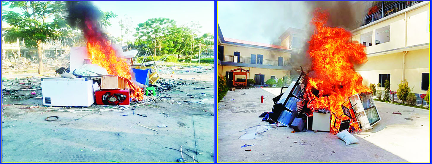 ထို့ပြင် ရွှေကုက္ကိုလ်နယ်မြေအတွင်း၌ အွန်လိုင်းလိမ်လည်မှုများလုပ်ဆောင်ရာတွင် အသုံးပြုခဲ့သည့် အဆောက်အအုံများကို နိုဝင်ဘာ ၁၈ ရက်မှ စတင်စစ်ဆေးခဲ့ရာ ယနေ့အထိ အဆောက်အအုံ ၃၈၃ လုံးကို စစ်ဆေးနိုင်ခဲ့ပြီး ၎င်းတို့အနက် အွန်လိုင်းလိမ်လည်မှုနှင့် လောင်းကစားမှုလုပ်ငန်းများ လုပ်ကိုင်ခဲ့သည့်အဆောက်အအုံ ၁၆၉ လုံးကို စစ်ဆေးတွေ့ရှိရကြောင်း၊ အဆိုပါအဆောက်အအုံများအား ပြန်လည်အသုံးချမှုမရှိစေရေးအတွက် ချိပ်ပိတ်သိမ်းဆည်းခြင်း များကို ဆောင်ရွက်လျက်ရှိရာ ယနေ့အထိ တရားမဝင်အဆောက်အအုံ ၁၆၁ လုံးကို ချိပ်ပိတ်သိမ်းဆည်းခြင်းများ ဆောင်ရွက်ပြီးဖြစ်ကြောင်းနှင့် အဆိုပါ တရားမဝင်အဆောက်အအုံများအနက် ယနေ့တွင် ဟုံထု ၁၃ ထပ် အဆောက်အအုံတစ်လုံးကို စတင်၍ စနစ်တကျဖြိုချဖျက်ဆီးခြင်းများ ဆောင်ရွက်ခဲ့ကြောင်း သိရသည်။