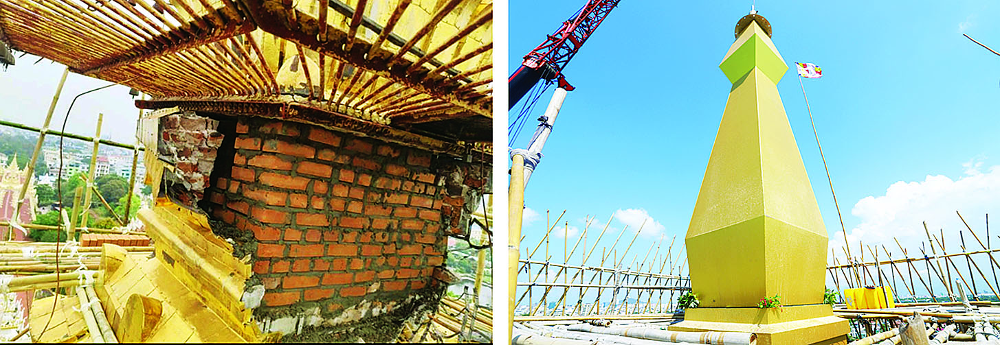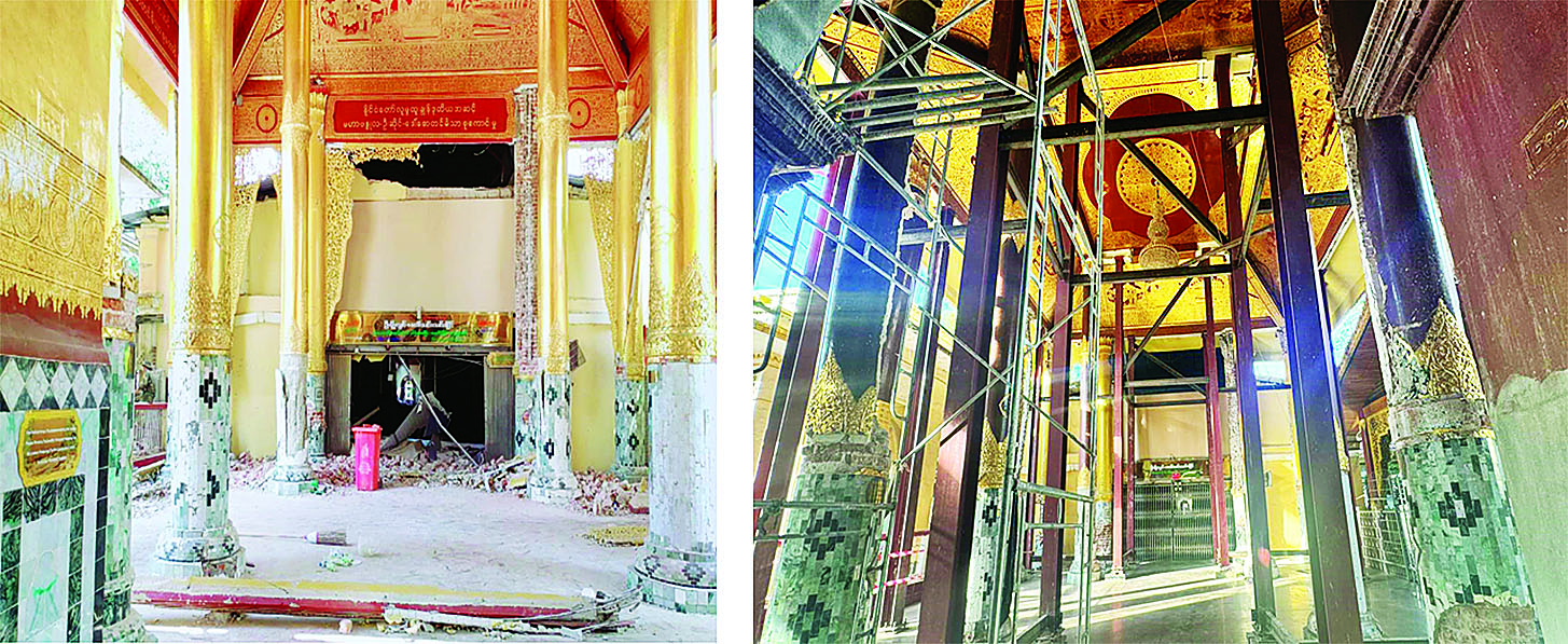 ပြည်ထောင်စုသမ္မတမြန်မာနိုင်ငံတော် ယာယီသမ္မတ နိုင်ငံတော်လုံခြုံရေးနှင့် အေးချမ်းသာယာရေးကော်မရှင်ဥက္ကဋ္ဌ ဗိုလ်ချုပ်မှူးကြီး မင်းအောင်လှိုင်သည် ဇနီး ဒေါ်ကြူကြူလှ၊ ကော်မရှင်အတွင်းရေးမှူး တွဲဖက်အမှုဆောင်ချုပ် ဗိုလ်ချုပ်ကြီး ရဲဝင်းဦးနှင့် ဇနီး၊ ခရီးစဉ်တွင်လိုက်ပါလာသည့် အဖွဲ့ဝင်များ၊ မန္တလေးတိုင်းဒေသကြီးဝန်ကြီးချုပ်၊ ကာကွယ်ရေးဦးစီးချုပ်ရုံးမှ အဆင့်မြင့်တပ်မတော်အရာရှိကြီးများ၊ အလယ်ပိုင်းတိုင်းစစ်ဌာနချုပ် တိုင်းမှူးနှင့် အဖွဲ့ဝင်များလိုက်ပါ၍ ယနေ့နံနက်ပိုင်းတွင် မန္တလေးမြို့ မဟာမုနိဘုရားကြီးသို့ သွားရောက်ဖူးမြော်ကြည်ညိုပြီး ငလျင်ဒဏ်ကြောင့် ထိခိုက်ပျက်စီးခဲ့ရသည့် သာသနိကအဆောက်အဦများအား ရှေးမူမပျက် ပြန်လည်တည်ဆောက်ပြုပြင်မွမ်းမံနေမှု အခြေအနေများကို ကြည့်ရှုစစ်ဆေးသည်။