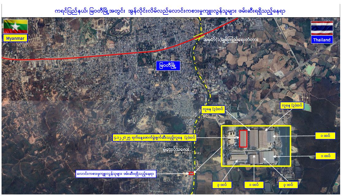 အွန်လိုင်းလောင်းကစားမှုများ၊ အွန်လိုင်းလိမ်လည်မှုများအပါအဝင် ဒုစရိုက်မှုများ ကျူးလွန်ခဲ့ကြသူများအား အင်တိုက်အားတိုက်ဖြင့် ကျယ်ကျယ်ပြန့်ပြန့် ရှာဖွေဖမ်းဆီး အရေးယူခြင်းများ ဆောင်ရွက်လျက်ရှိရာ ယနေ့တွင် မြဝတီမြို့ရှိ လုံခြုံရေးပူးပေါင်းအဖွဲ့များက သတင်းအရ မြဝတီမြို့ဝန်းကျင်တွင် ရှောင်တခင်စစ်ဆေးခြင်းများ ဆောင်ရွက်ခဲ့ရာ အမှတ်(၃) ရပ်ကွက်တွင် တရားမဝင်အွန်လိုင်းလောင်းကစားမှုများ၊ အွန်လိုင်းလိမ်လည်မှုများ ကျူးလွန်လျက်ရှိကြသည့် တရုတ်နိုင်ငံသား ၂၅ ဦး၊ မြန်မာနိုင်ငံသား ၂၂၃ ဦး စုစုပေါင်း ၂၄၈ ဦးအား တရားမဝင်အွန်လိုင်းလောင်းကစားနှင့် ငွေကြေးလိမ်လည်မှုများတွင် အသုံးပြုသည့် ကွန်ပျူတာမျိုးစုံ ၈၂ လုံး၊ မိုဘိုင်းဖုန်း ၉၂ လုံးနှင့် ဆက်စပ်ပစ္စည်းများနှင့်အတူ ဖမ်းဆီးရမိခဲ့ပြီး အဆိုပါဖမ်းဆီးရမိသူများအား ဥပဒေလုပ်ထုံးလုပ်နည်းများနှင့်အညီ စနစ်တကျ အရေးယူဆောင်ရွက်သွားမည်ဖြစ်သည်။ ထို့ပြင် အွန်လိုင်းလိမ်လည်မှုနှင့် လောင်းကစားမှုလုပ်ငန်းများ နေထိုင်လုပ်ကိုင်ခဲ့ကြသည့် ၃ ထပ် အဆောက်အအုံ ၅ လုံး၊ ၁ ထပ် အဆောက်အအုံ ၃ လုံး၊ စုစုပေါင်း ၈ လုံးတို့အား စစ်ဆေးတွေ့ရှိခဲ့ရပြီး ပြန်လည်အသုံးချမှုမရှိစေရေးအတွက် ၃ ထပ်အဆောက်အအုံ ၁ လုံးကို ယနေ့တွင် စတင်၍ စနစ်တကျ ဖြိုချဖျက်ဆီးခဲ့ကြောင်း သိရှိရသည်။