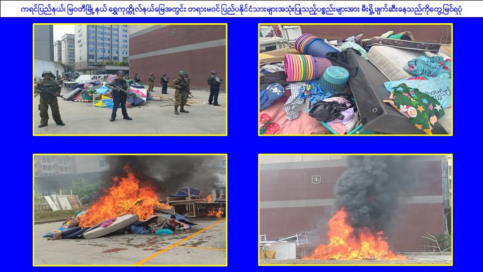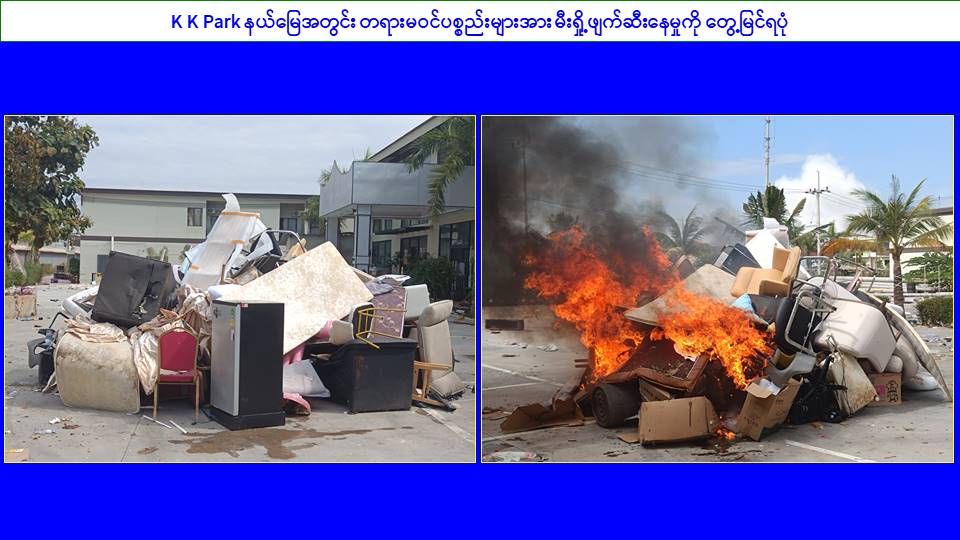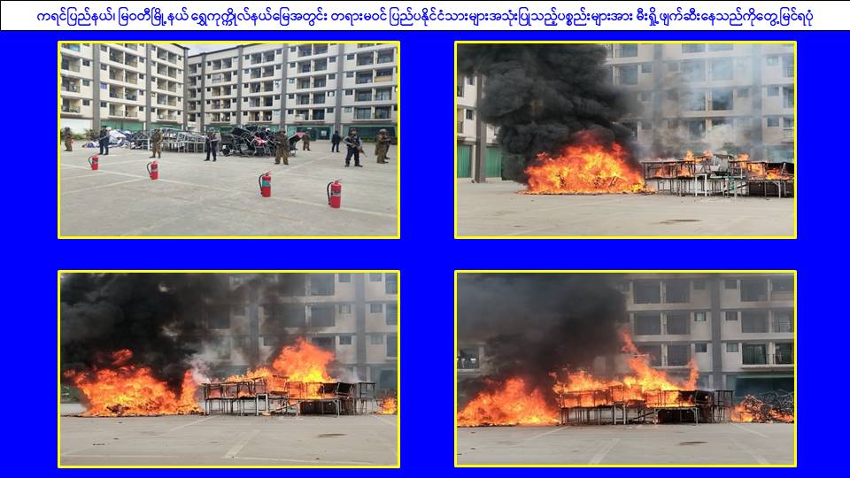 ၎င်းအပြင် မြဝတီမြို့နယ်အတွင်းရှိ KK Park နယ်မြေနှင့် ရွှေကုက္ကိုလ်နယ်မြေတို့၌ အွန်လိုင်းလိမ်လည်လောင်းကစားမှုကျူးလွန်ရာတွင် အသုံးပြုသည့်ပစ္စည်းများအား ထပ်မံ၍ အသုံးပြုနိုင်ခြင်းမရှိစေရန်အတွက် ယနေ့တွင်လည်း စနစ်တကျမီးရှို့ဖျက်ဆီးခဲ့ကြောင်း သိရှိရသည်။