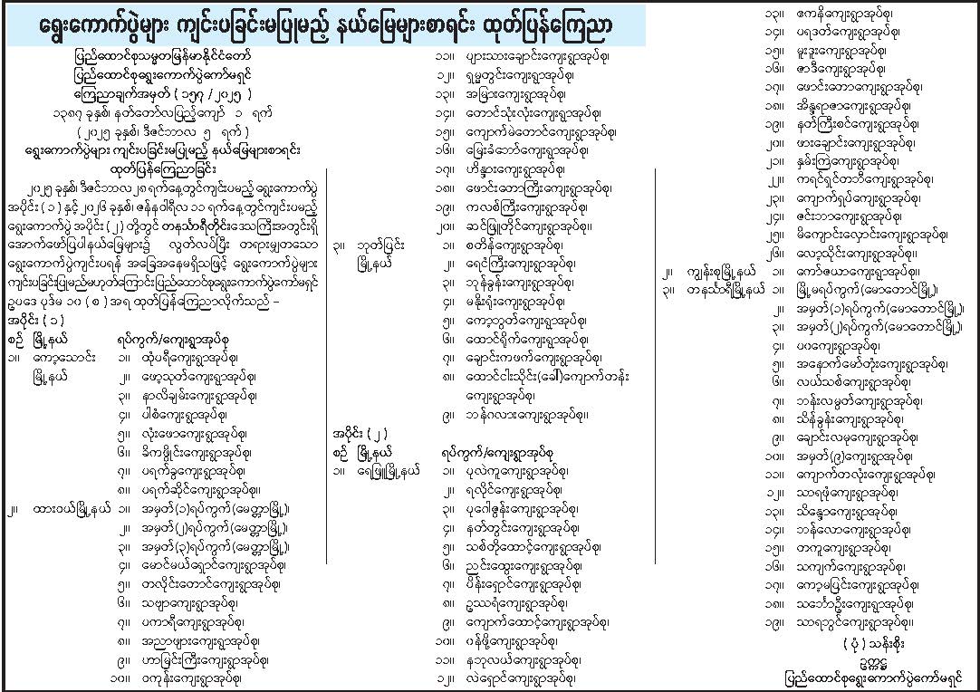 ရွေးကောက်ပွဲများ ကျင်းပခြင်းမပြုမည့် နယ်မြေများ စာရင်းထုတ်ပြန်ကြေညာ