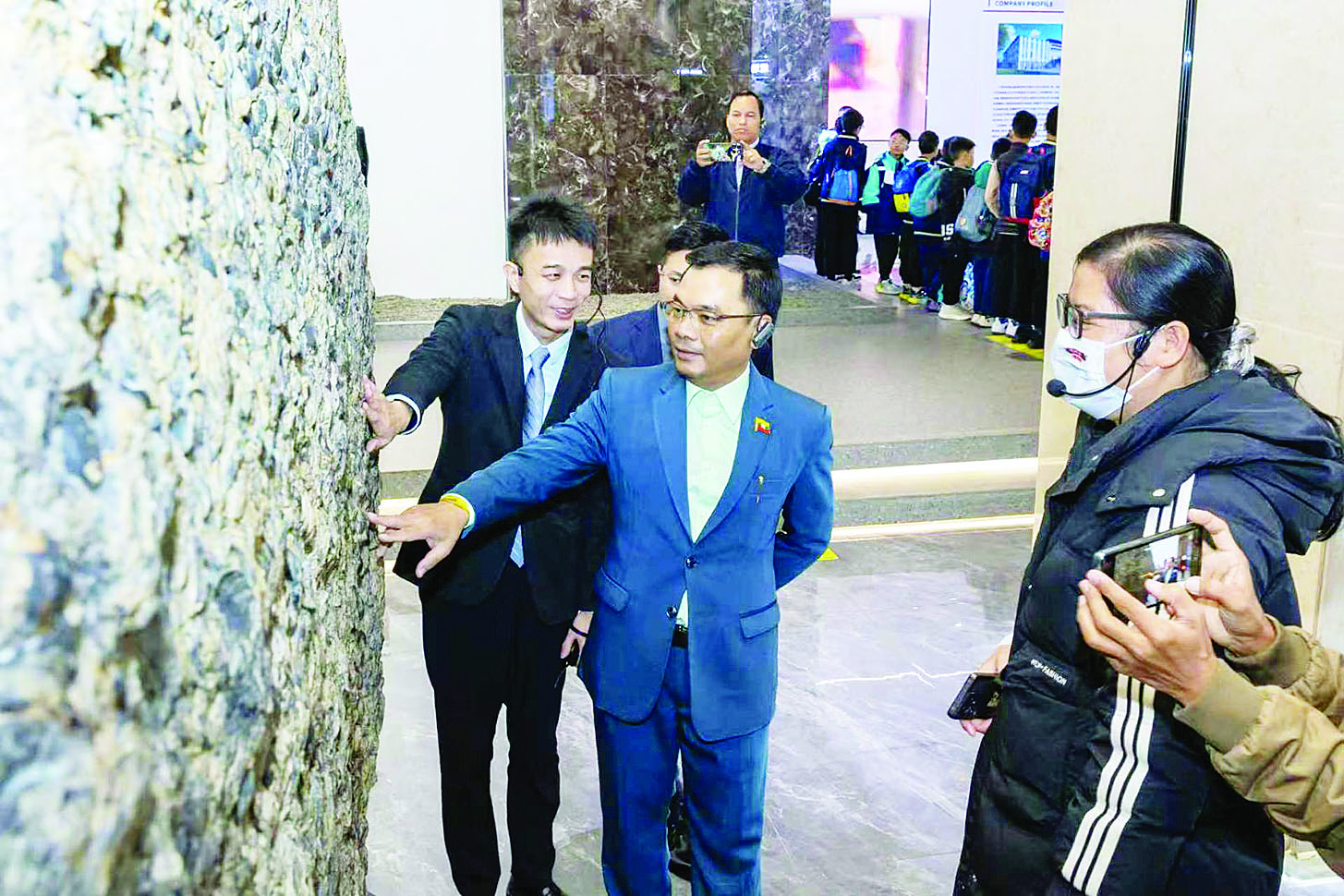 ယင်းနောက် ဒုတိယဝန်ကြီးနှင့်အဖွဲ့သည် ဉာဏ်ရည်တုနည်းပညာသုံး ခရုခေါက်ဆွဲထုတ်လုပ်သော ဟူကွေ့(Hu-Gui) အစားအသောက် ကုမ္ပဏီသို့ရောက်ရှိရာ မန်နေဂျာ Ms Wei Qiuling နှင့် တာဝန်ရှိသူများက စက်ရုံအတွင်း၌ သုတေသနဓာတ်ခွဲ ခန်းများ တည်ထောင်ထားရှိပြီး ကွမ်ရှီးသိပ္ပံနှင့် နည်းပညာတက္ကသိုလ်အပါအဝင် သုတေသနအဖွဲ့အစည်းများနှင့်ပူးပေါင်း၍ ထုတ်ကုန်များ၏ စံအရည်အသွေးကို စဉ်ဆက်မပြတ် ထိန်းသိမ်းဆောင်ရွက်လျက်ရှိကြောင်း၊ ဒေသတွင်းအလုပ်အကိုင်အခွင့်အလမ်းများ ဖော်ဆောင်နိုင်ပြီး တစ်နိုင်ငံလုံးသို့ ပြည်တွင်းစားသောက်ရေးဖူလုံမှုကို အဓိက ထားဖြန့်ဖြူးပေးပြီး e-comm-erce အဖြစ်လည်း ကြိုတင်မှာယူ ရောင်းချရခြင်းများလည်းရှိကြောင်း ရှင်းလင်းတင်ပြရာ ဒုတိယ ဝန်ကြီးက မိမိတို့နိုင်ငံ၌ နိုင်ငံတော်မှ ချမှတ်ထားသော အမျိုးသားရေး ဦးတည်ချက်အတိုင်း အလေးထားဆောင်ရွက်လျက်ရှိသည့် စိုက်ပျိုးမွေးမြူရေးကို အခြေခံသည့် စက်မှုကဏ္ဍ ဖွံ့ဖြိုးတိုးတက်ရေး၊ စားရေရိက္ခာဖူလုံရေးလုပ်ငန်းစဉ်များနှင့်လည်း တူညီပါကြောင်းပြောကြားပြီး ဉာဏ်ရည်တု နည်းပညာအသုံးပြုမှုနှင့် စံအရည်အသွေးနှင့်အညီ ထုတ်လုပ်ရေး လုပ်ငန်းဆိုင်ရာ သိရှိလိုသည်များကို ပြန်လည်မေးမြန်းဆွေးနွေးခဲ့ကြောင်း သိရသည်။