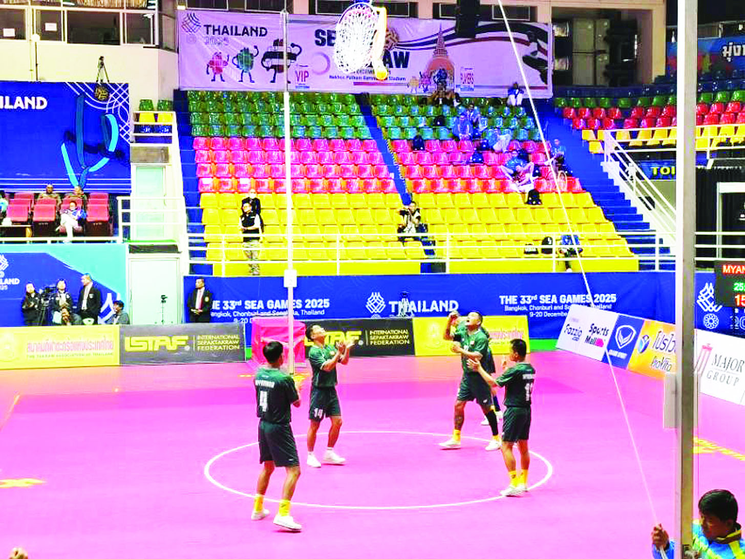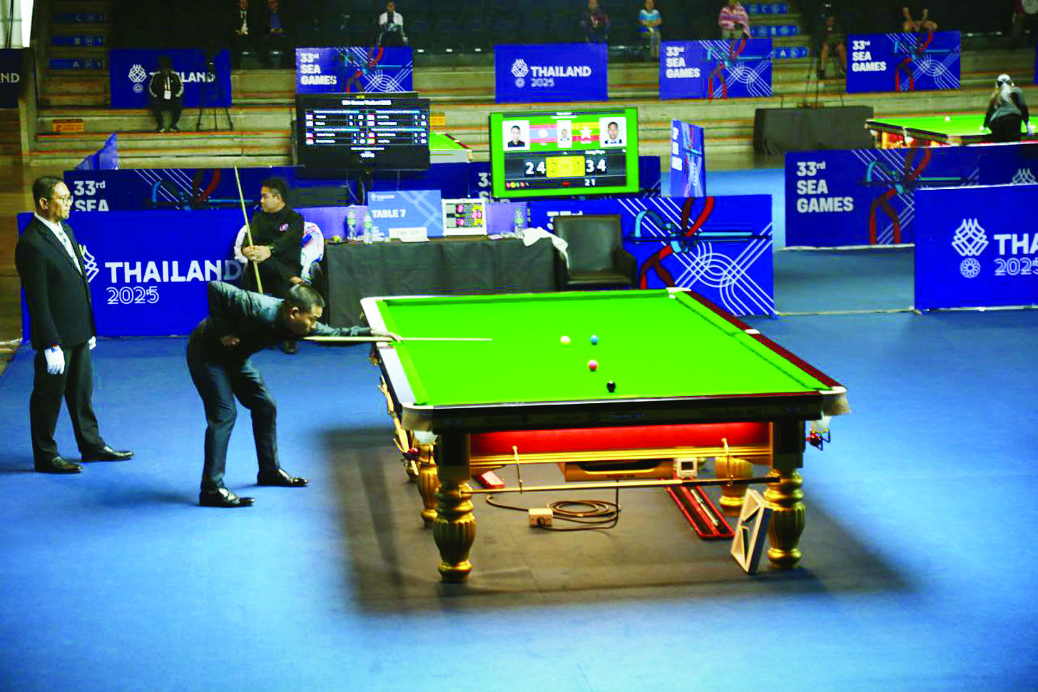 မြန်မာနိုင်ငံအိုလံပစ်ကော်မတီဥက္ကဋ္ဌ အားကစားနှင့်လူငယ်ရေးရာဝန်ကြီးဌာနနှင့် ဟိုတယ်နှင့်ခရီးသွားလာရေးဝန်ကြီးဌာန ပြည်ထောင်စုဝန်ကြီး Jeng Phang နော်တောင်၊ ပြန်ကြားရေးဝန်ကြီးဌာန ဒုတိယဝန်ကြီး ဦးရဲတင့်၊ ရန်ကုန်တိုင်းဒေသကြီး လူမှုရေးရာဝန်ကြီး ဦးဌေးအောင်၊ ထိုင်းနိုင်ငံဆိုင်ရာ မြန်မာနိုင်ငံသံအမတ်ကြီး ဦးဇော်ဇော်စိုး၊ စစ်သံမှူးကြီး ဗိုလ်မှူးချုပ် ဝင်းသူလင်း၊ မြန်မာအားကစားအဖွဲ့ခေါင်းဆောင်နှင့် အုပ်ချုပ်မှုအဖွဲ့ဝင်များ၊ မြန်မာနိုင်ငံပိုက်ကျော်ခြင်းအဖွဲ့ချုပ်ဥက္ကဋ္ဌနှင့် တာဝန်ရှိသူများ၊ မြန်မာနိုင်ငံအားကစားအဖွဲ့ချုပ်ဥက္ကဋ္ဌနှင့် တာဝန်ရှိသူများ တက်ရောက်ကြည့်ရှုအားပေးကြသည်။