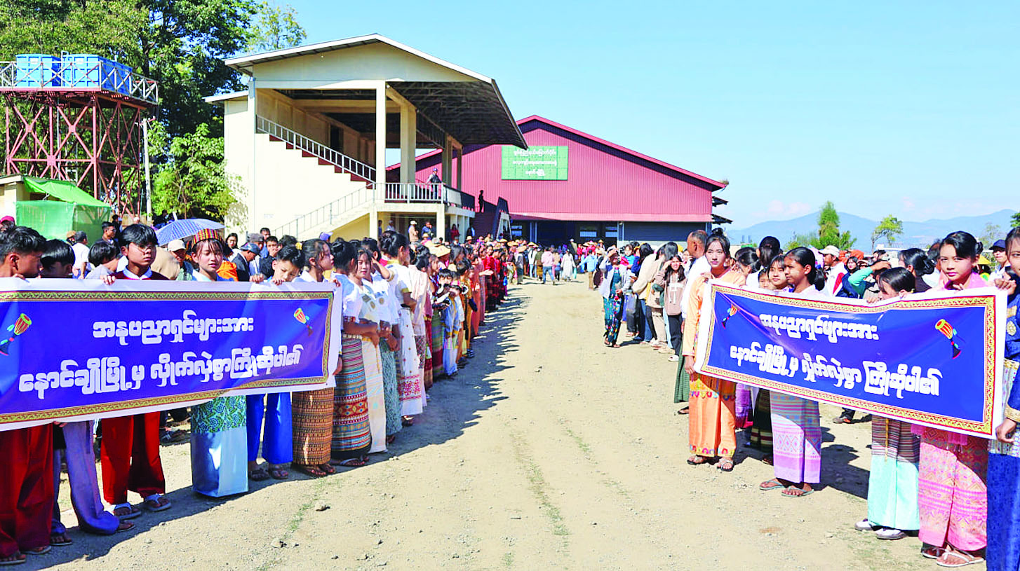 ထို့နောက် ပြန်ကြားရေးနှင့်တိုးတက်ခိုင်မာအားကောင်းသည့် လူမှုအသိုက်အဝန်းဖော်ဆောင်ရေးတွေ့ဆုံပွဲကျင်းပမည့် နောင်ချိုမြို့အားကစားရုံသို့ရောက်ရှိကြရာ တပ်မတော်သားများ၊ ဌာနဆိုင်ရာဝန်ထမ်းများ၊ ကျောင်းသား ကျောင်းသူများနှင့် ပြည်သူများက လှိုက်လှဲနွေးထွေးစွာကြိုဆိုကြပြီး အနုပညာရှင်များနှင့်အတူ အမှတ်တရဓာတ်ပုံရိုက်ကြသည်။