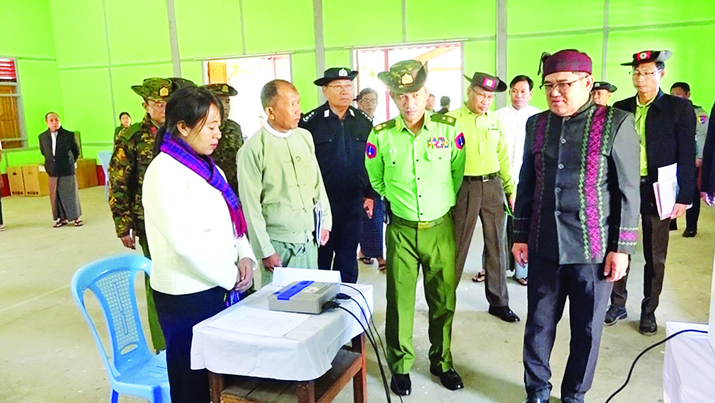 ဦးစွာ ပြည်နယ်ဝန်ကြီးချုပ်၊ တိုင်းမှူးနှင့် အဖွဲ့ဝင်များသည် အမှတ်(၁) အခြေခံပညာအထက်တန်းကျောင်း၌ ၂၀၂၅ ခုနှစ် ပါတီစုံဒီမိုကရေစီအထွေထွေ ရွေးကောက်ပွဲအောင်မြင်စွာကျင်းပပြုလုပ်နိုင်ရေး မဲရုံကြိုတင်ပြင်ဆင်ဆောင်ရွက်ထားရှိမှု အခြေအနေများကို သွားရောက်ကြည့်ရှုစစ်ဆေးရာ မဲရုံတာဝန်ရှိသူများက မြန်မာအီလက်ထရောနစ်မဲပေးစက် (MEVM)နှင့် မဲပေးနိုင်ရေးကြိုတင်ပြင်ဆင်ဆောင် ရွက်ထားရှိမှုအခြေအနေများကို ရှင်းလင်းတင်ပြပြီး ပြည်နယ်ဝန်ကြီးချုပ်နှင့် တိုင်းမှူးတို့က လိုအပ်သည်များ ပေါင်းစပ်ညှိနှိုင်းဆောင်ရွက်ပေးသည်။