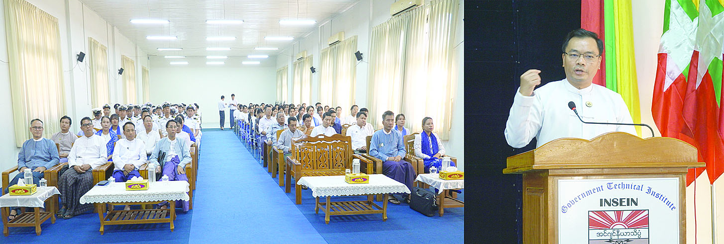 လျှပ်စစ်သုံးယာဉ်နှင့် ဆက်စပ်ပစ္စည်းများ သုတေသနဖွံ့ဖြိုးရေးနှင့် နည်းပညာပြန့်ပွားရေးလုပ်ငန်းကော်မတီဥက္ကဋ္ဌ သိပ္ပံနှင့်နည်းပညာဝန်ကြီးဌာန ဒုတိယဝန်ကြီး ဒေါက်တာ အောင်ဇေယျသည် ယမန်နေ့မွန်းလွဲပိုင်းက နည်းပညာ၊ သက်မွေးပညာနှင့် လေ့ကျင့်ရေးဦးစီးဌာန အစိုးရစက်မှုလက်မှုသိပ္ပံ (အင်းစိန်) ၌ ကျင်းပသည့် လျှပ်စစ်သုံးယာဉ် (Electric Vehicle ၊ EV) စစ်ဆေးခြင်းသင်တန်း (၁/၂၀၂၅) ဖွင့်ပွဲအခမ်းအနားသို့ တက်ရောက်သည်။
