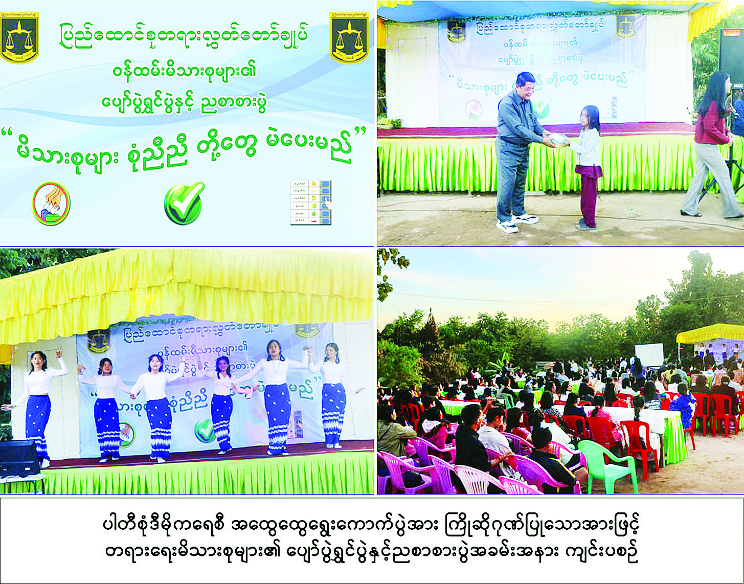 ၂၀၂၅ ခုနှစ် ဒီဇင်ဘာလ ၂၈ ရက်တွင် စတင်ကျင်းပမည့် ပါတီစုံဒီမိုကရေစီအထွေထွေရွေးကောက်ပွဲကို ကြိုဆိုဂုဏ်ပြုသောအားဖြင့် “မိသားစုများ စုံညီညီ၊ တို့တွေမဲပေးမည်” အစီအစဉ်ဖြင့် ပြည်ထောင်စုတရားလွှတ်တော်ချုပ် တရားရေးမိသားစုများ၏ ပျော်ပွဲရွှင်ပွဲနှင့် ညစာစားပွဲကို ပြည်ထောင်စုနယ်မြေ၊ နေပြည်တော်၊ ဇမ္ဗူသီရိမြို့နယ်၊ ဘောဂသိဒ္ဓိရပ်ကွက်၊ ဇမ္ဗူကျက်သရေလမ်းနှင့် ရွှေကြာပင်လမ်းထောင့်ရှိ ယာယီဝန်ထမ်းအိမ်ရာ၌ ယနေ့ ကျင်းပသည်။