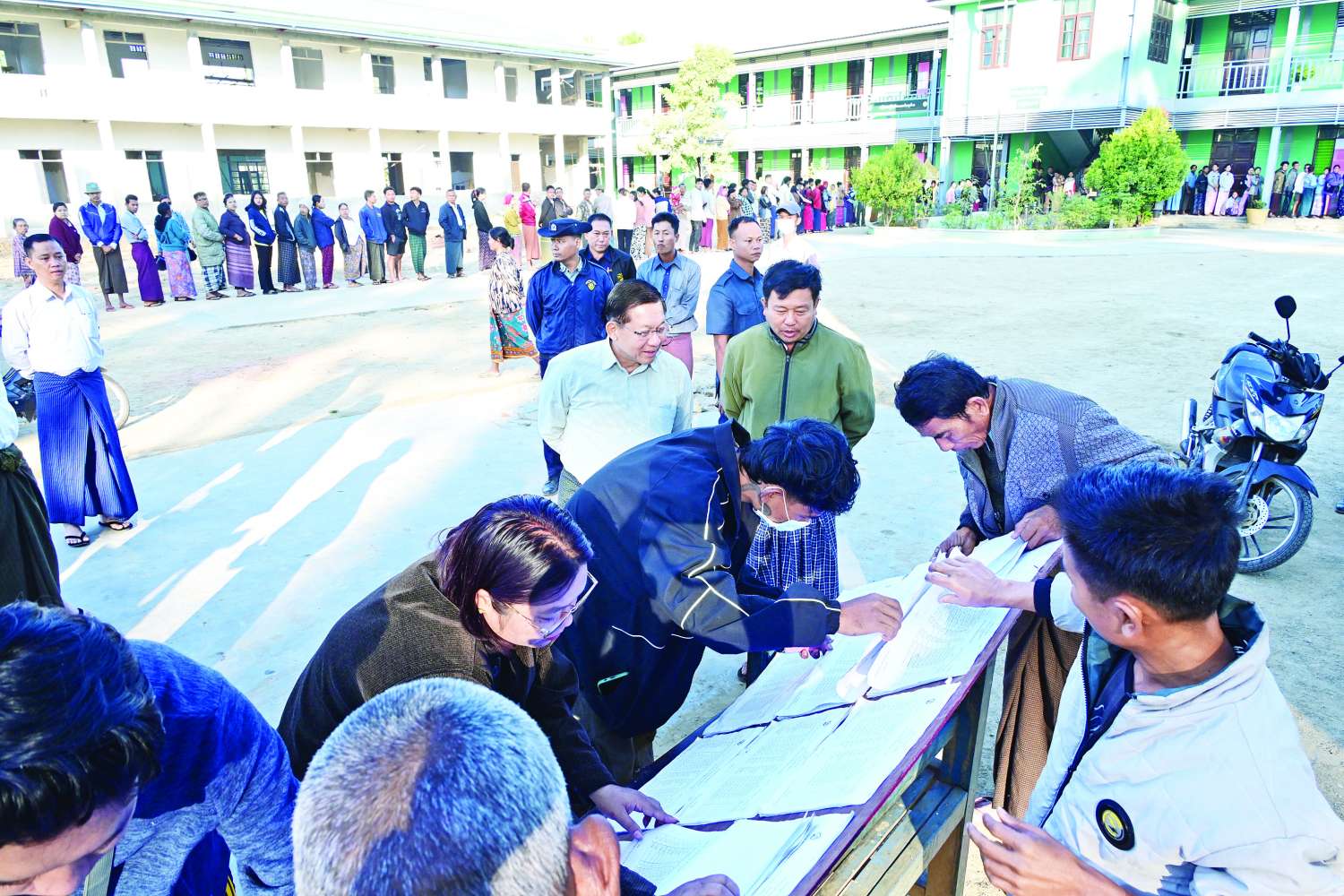 ပြည်ထောင်စုသမ္မတမြန်မာနိုင်ငံတော် ၂၀၂၅ ခုနှစ် ပါတီစုံဒီမိုကရေစီအထွေထွေရွေးကောက်ပွဲကြီးကို ယနေ့နံနက် ၆ နာရီမှစတင်၍ နိုင်ငံတစ်ဝန်းလုံးတွင် ကျင်းပပြုလုပ်ရာ မဲဆန္ဒရှင်ပြည်သူများက သက်ဆိုင်ရာမဲရုံများတွင် ဆန္ဒမဲများပေးကြသည်။