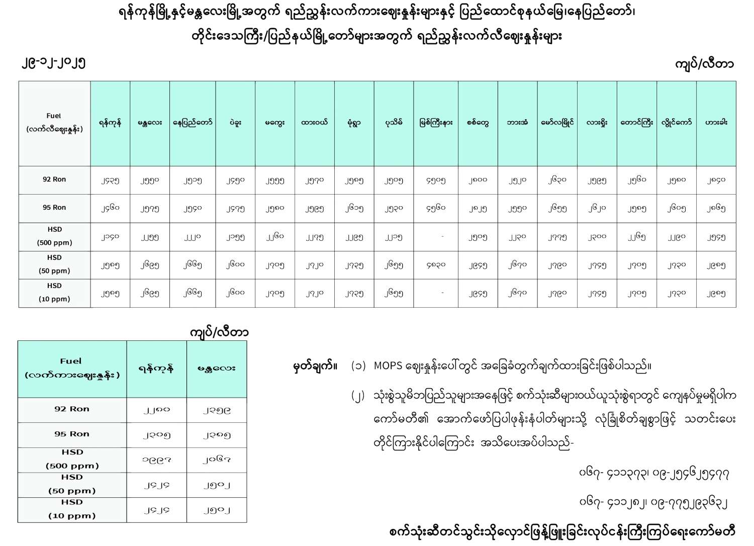 ရန်ကုန်မြို့နှင့် မန္တလေးမြို့အတွက် ရည်ညွှန်းလက်ကားဈေးနှုန်းများနှင့် ပြည်ထောင်စုနယ်မြေ နေပြည်တော်၊ တိုင်းဒေသကြီး/ ပြည်နယ် မြို့တော်များအတွက် ရည်ညွှန်းလက်လီဈေးနှုန်းများ 12/29/2025