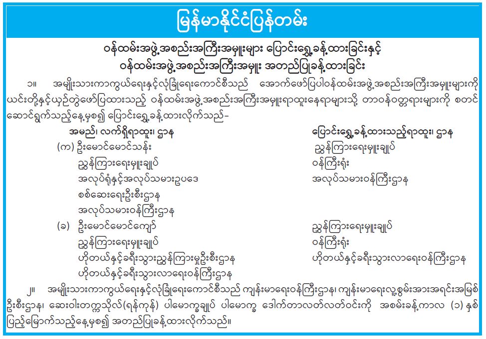 ဝန်ကြီးဌာန ကြေညာချက်များ
