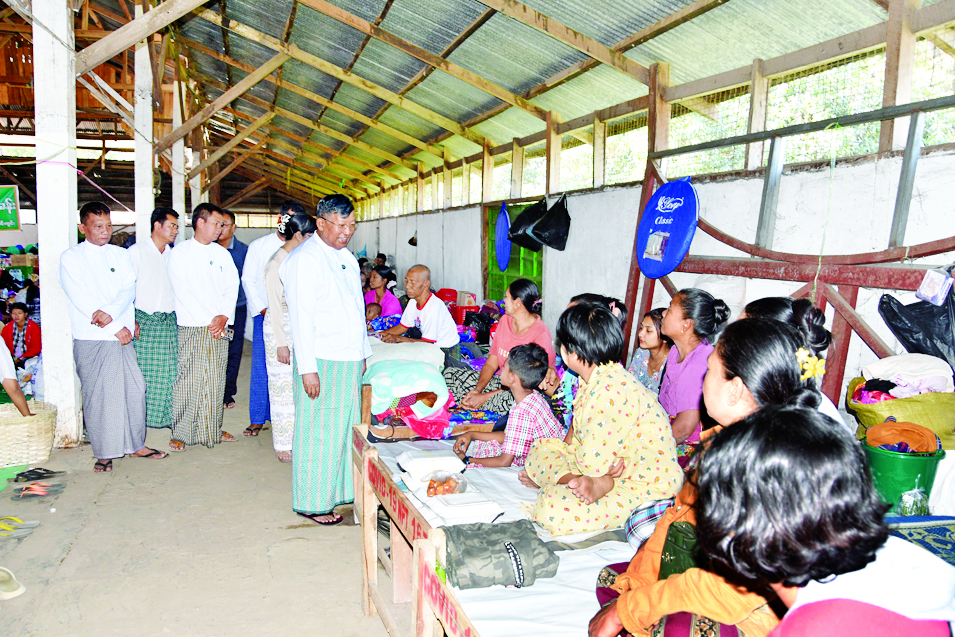 ထို့နောက် ပြည်ထောင်စုဝန်ကြီးသည် တာဝန်ရှိသူများနှင့်အတူ မီးဘေးသင့်အိမ်ထောင်စု ၆၀ မှ ပြည်သူ ၃၀၈ ဦးအတွက် ပန်းပေါင်းစုံဗုဒ္ဓ ရုပ်ပွားတော်များ၊ ဆန်၊ ဆီ၊ စောင်၊ အိပ်ရာခင်းဖျာ၊ ပုဝါ၊ ကုလားပဲ၊ မုန့်နှင့် အချိုရည်စသည့် ထောက်ပံ့ပစ္စည်းများ ပေးအပ်လှူဒါန်းပြီး မီးဘေးသင့် ပြည်သူများအား နွေးထွေးစွာ အားပေးစကားပြောကြားခဲ့ကြောင်း သိရသည်။