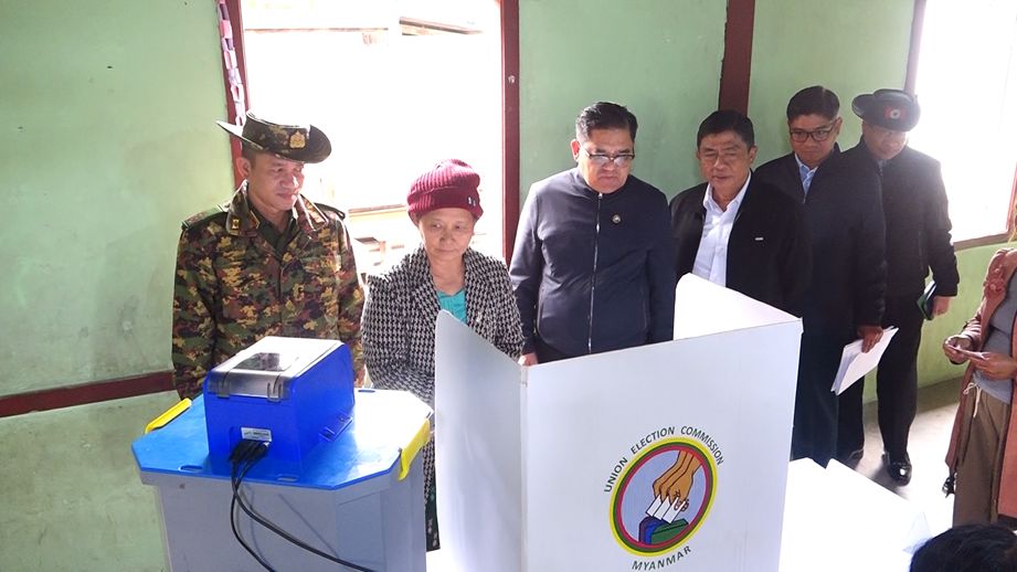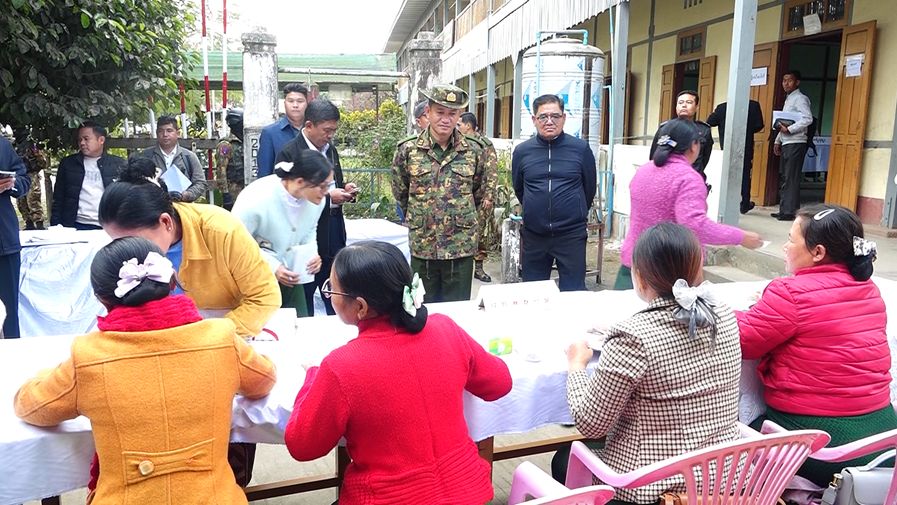 ကချင်ပြည်နယ်၊ ဝိုင်းမော်မြို့နယ်၊ မိုင်းနားကျေးရွာအုပ်စုအတွင်း ၂၀၂၅ ခုနှစ်၊ ပါတီစုံဒီမိုကရေစီအထွေထွေရွေးကောက်ပွဲ အပိုင်း(၂) မဲပေးရာတွင် ကြန့်ကြာမှုမရှိစေဘဲ လွယ်ကူလျင်မြန်စွာ မဲပေးနိုင်ရေးအတွက် အဆိုင်းနှစ်ဆိုင်းခွဲ၍ မဲပေးခြင်းသရုပ်ပြလေ့ကျင့်နေမှုကို ယနေ့မွန်းလွဲပိုင်းတွင် အဆိုပါကျေးရွာအုပ်စု အခြေခံပညာအထက်တန်းကျောင်း(မိုင်းနား)၌ ပြုလုပ်ရာ ကချင်ပြည်နယ်ဝန်ကြီးချုပ် ဦးခက်ထိန်နန်၊ ပြည်ထောင်စုရွေးကောက်ပွဲကော်မရှင်အဖွဲ့ဝင် ကချင်ပြည်နယ်တာဝန်ခံ ဦးခင်ဇော်၊ မြောက်ပိုင်းတိုင်းစစ်ဌာနချုပ် တိုင်းမှူး ဗိုလ်ချုပ် အောင်ဇော်ထွေးနှင့် တာဝန်ရှိသူများက သွားရောက်ကြည့်ရှုစစ်ဆေးကြသည်။