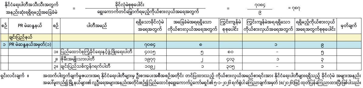 ၂၀၂၅ ခုနှစ် ပါတီစုံဒီမိုကရေစီအထွေထွေရွေးကောက်ပွဲ တိုင်းဒေသကြီး/ ပြည်နယ်လွှတ်တော် (အချိုးကျကိုယ်စားပြုစနစ်)၊ ချင်းပြည်နယ်မဲဆန္ဒနယ်အမှတ် (၁) နိုင်ငံရေးပါတီများ၏ ကိုယ်စားလှယ်လောင်းရရှိမှုအခြေအနေ 01/06/2026