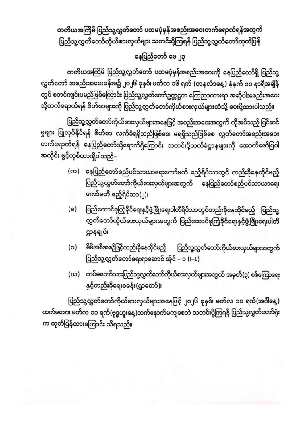 တတိယအကြိမ် ပြည်သူ့လွှတ်တော် ပထမပုံမှန်အစည်းအဝေးတက်ရောက်ရန်အတွက် ပြည်သူ့လွှတ်တော်ကိုယ်စားလှယ်များ သတင်းပို့ကြရန် ပြည်သူ့လွှတ်တော်ထုတ်ပြန်
