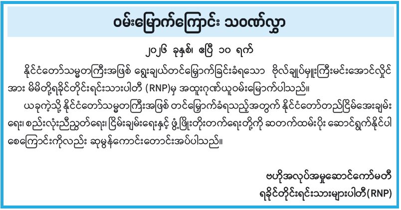 နိုင်ငံတော်အစိုးရ၏ ကြေညာချက်များ