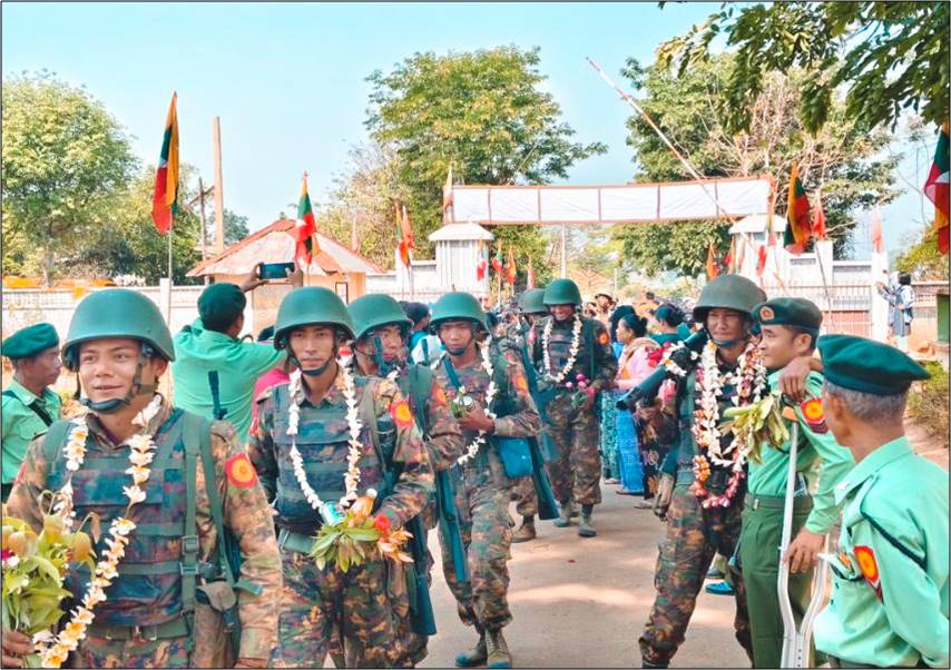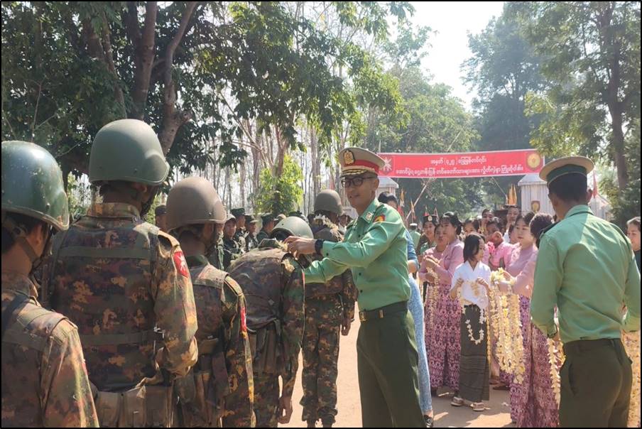 တိုင်းဒေသကြီးနှင့်ပြည်နယ်အသီးသီးရှိ တိုင်းရင်းသားပြည်သူများ စိတ်အေးချမ်းသာစွာ နေထိုင်လုပ်ကိုင်စားသောက်နိုင်ရေးနှင့် အသက်အိုးအိမ်စည်းစိမ်ဥစ္စာ လုံခြုံမှုရှိစေရေး၊ နိုင်ငံတော်တည်ငြိမ်ရေး၊ နယ်မြေအေးချမ်းရေးအတွက် ရှေ့တန်းစစ်မျက်နှာများတွင် စစ်ဆင်ရေးတာဝန်များကို နေ့မအားညမနား စွမ်းစွမ်းတမံ တာဝန်ထမ်းဆောင်ခဲ့သော ရှေ့တန်းပြန် တပ်မတော်သားများအား သက်ဆိုင်ရာတပ်နယ်များမှ တာဝန်ရှိသူများနှင့် တက်ရောက်လာကြသူများက အောင်သပြေခက်များဖြင့် လည်းကောင်း၊ အိုးစည်ဒိုးပတ် အတီး၊ အမှုတ်၊ အက၊ အခုန်များဖြင့်လည်းကောင်း ဝမ်းမြောက်စွာ သောင်းသောင်းဖြဖြ ကြိုဆိုဂုဏ်ပြုခဲ့ကြပြီး တာဝန်ရှိသူများက ဂုဏ်ပြုအမှာစကားပြောကြားကာ အောင်ပွဲရရှေ့တန်းပြန် တပ်မတော်သားများအတွက် ဂုဏ်ပြုချီးမြှင့်ငွေများ ပေးအပ်ခဲ့ကြောင်း သတင်းရရှိသည်။