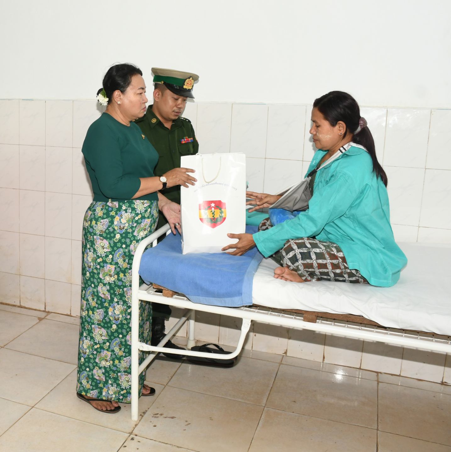 အလားတူ တပ်မတော်ကာကွယ်ရေးဦးစီးချုပ်၏ဇနီးနှင့်အဖွဲ့ဝင်များသည် အမျိူးသမီးနှင့်ကလေးကုသဆောင်များသို့သွားရောက်၍ ဆေးရုံတက်ရောက်ကုသလျက်ရှိသည့် လူနာများအား လိုက်လံကြည့်ရှုအားပေးစကားပြောကြားပြီး ထောက်ပံ့ပစ္စည်းများနှင့်ဆေးရုံအတွက် အလှူငွေများပေးအပ်ခဲ့သည်။