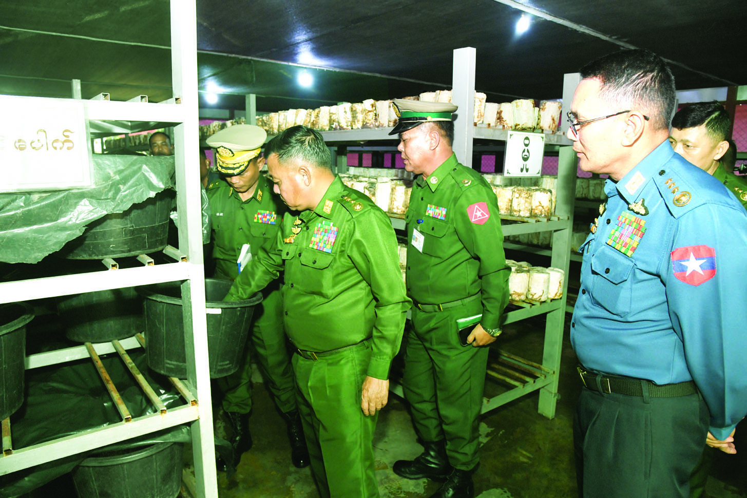 ထို့ပြင် တပ်မတော်ကွယ်ရေးဦးစီးချုပ်နှင့် အဖွဲ့ဝင်များသည် ယမန်နေ့ညနေပိုင်းတွင်လည်း တြိဂံဒေသတိုင်းစစ်ဌာနချုပ် စိုက်ပျိုး/မွေးမြူရေးဇုန်အတွင်းရှိ နို့စားနွား၊ အသားတိုးနွား၊ DYL ဝက်၊ ငါး၊ ဥစားကြက်၊ အသားစားကြက်၊ ကာကီကင်းဘဲများ၊ ဒေသန္တရကြက်များမွေးမြူထားရှိမှုနှင့် စိုက်ပျိုးမွေးမြူရေးလုပ်ငန်းများ အကောင်အထည်ဖော်ဆောင်ရွက်နေမှုများကို လိုက်လံကြည့်ရှုစစ်ဆေးကာ တာဝန်ရှိသူများ၏ တင်ပြချက်များအပေါ် လိုအပ်သည်များ လမ်းညွှန်မှာကြားခဲ့ကြောင်း သတင်းရရှိသည်။
