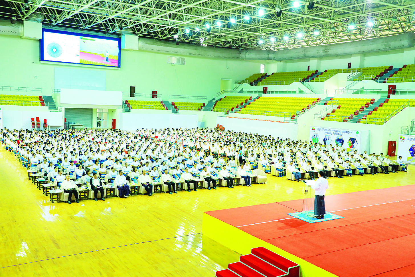 နိုင်ငံတော်သမ္မတ၏ လမ်းညွှန်ချက်များကို ဝန်ထမ်းများအား ထပ်ဆင့်ရှင်းလင်းခြင်းနှင့် အရာထမ်း၊ အမှုထမ်းများအား တွေ့ဆုံပွဲကို ယနေ့မွန်းလွဲပိုင်းတွင် နေပြည်တော် ဝဏ္ဏသိဒ္ဓိအားကစားကွင်းအတွင်းရှိ အားကစားရုံ(A)၌ကျင်းပရာ အားကစားရေးရာဝန်ကြီးဌာန ပြည်ထောင်စုဝန်ကြီး ဦးရဲမြင့်ထွန်း၊ ဒုတိယဝန်ကြီးဦးညီညီ၊ အမြဲတမ်းအတွင်းဝန်နှင့် တာဝန်ရှိသူများ၊ အရာထမ်း၊ အမှုထမ်းအင်အား ၈၀၀ ကျော် တက်ရောက်ကြသည်။