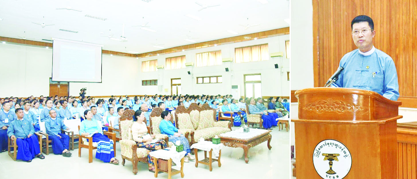 ဦးစွာ ပြည်ထောင်စုရာထူးဝန်အဖွဲ့ဥက္ကဋ္ဌ ဦးတင်မောင်ဝင်းက နိုင်ငံ့ဝန်ထမ်းများအနေဖြင့် နိုင်ငံတော်သမ္မတ၏ မိန့်ခွန်းတွင် ပါရှိသော လမ်းညွှန်မှာကြားချက် များကို အလေးအနက်ထား အကောင်အထည်ဖော်ဆောင်ရွက်ရမည်ဖြစ်ပါကြောင်း၊ ပြည်ထောင်စု ရာထူးဝန်အဖွဲ့သည် ဝန်ထမ်းကောင်းမှ နိုင်ငံကောင်းမည်ဆိုသည့် ဆောင်ပုဒ်နှင့်အညီ အရည်အချင်းပြည့်ဝသော နိုင်ငံ့ဝန်ထမ်းများ ဖြစ်လာစေရန် စနစ်တကျရွေးချယ်ပေးခြင်း၊ လေ့ကျင့်သင်တန်းပေးခြင်း၊ နိုင်ငံ့ဝန်ထမ်းဥပဒေ၊ နိုင်ငံ့ဝန်ထမ်း နည်းဥပဒေများ၊ နိုင်ငံ့ဝန်ထမ်းကျင့်ဝတ်နှင့် စံတန်ဖိုးများကို စိမ့်ဝင်စေ၍ ခံယူချက်စိတ်ဓာတ် မြင့်မားစေရန် ဆောင်ရွက်ပေးခြင်းနှင့် ဝန်ထမ်းအဖွဲ့အစည်းအသီးသီးမှ ဝန်ထမ်းရေးရာစီမံခန့်ခွဲမှုကိစ္စများနှင့်ပတ်သက်၍ သဘောထားမှတ်ချက် ပြန်ကြားခြင်းတို့ကို တာဝန်ယူဆောင်ရွက်ရသော နိုင်ငံ့ဝန်ထမ်းအဖွဲ့အစည်းတစ်ခုဖြစ်ပါကြောင်း၊ နိုင်ငံ့ဝန်ထမ်းအဖွဲ့အစည်းများသည် နိုင်ငံတည်ရှိသရွေ့ ထာဝရရှိနေရမည်ဖြစ်သည့်အတွက် ပြည်ထောင်စုရာထူးဝန်အဖွဲ့နှင့် မြန်မာနိုင်ငံဝန်ထမ်းအဖွဲ့အစည်းများရှိ နိုင်ငံ့ဝန်ထမ်းများသည် ကဏ္ဍအလိုက်၊ အဆင့်အလိုက် လုပ်ငန်းများ စဉ်ဆက်မပြတ် မှန်မှန်ကန်ကန် လုပ်ဆောင်ပြီး နိုင်ငံ့အကျိုးကို ရှေးရှု၍ အမျိုးသားအကျိုးစီးပွားကို မြှင့်တင်ကြိုးစားဆောင်ရွက်လျက်ရှိပါကြောင်း။